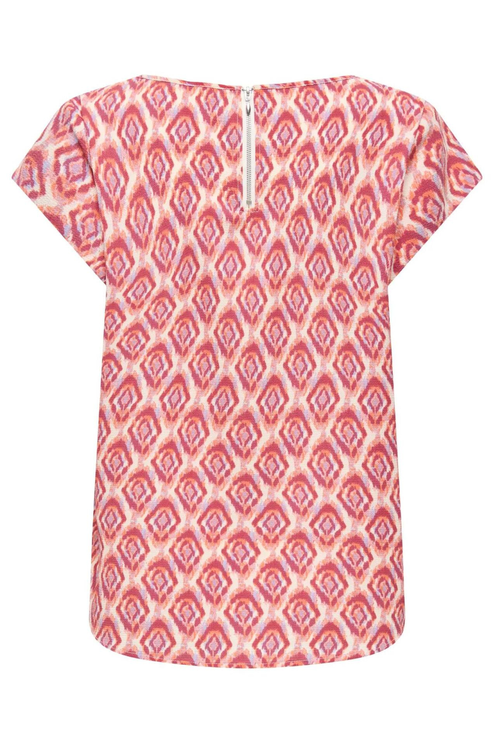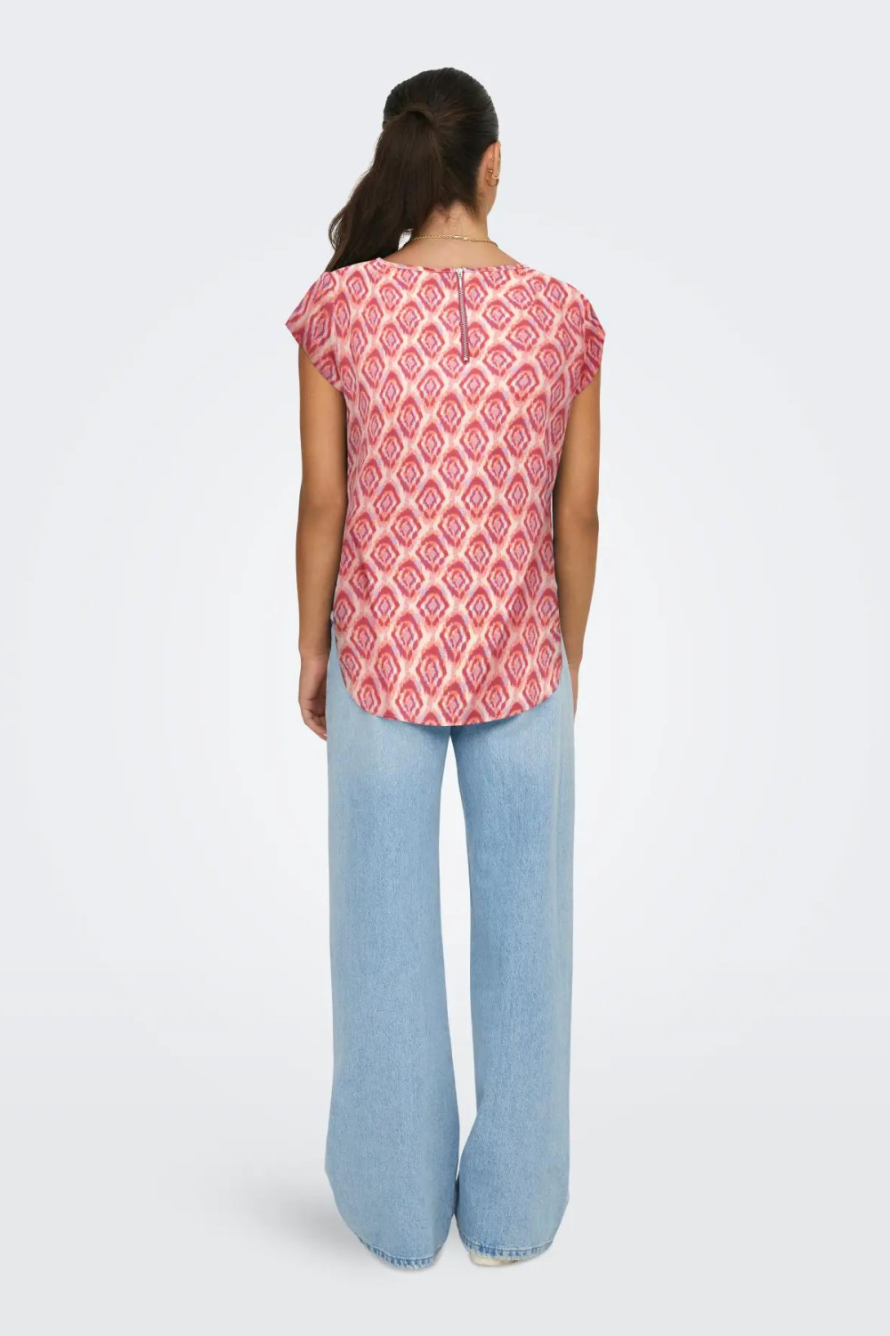Met dit casual T-shirt van Only haal je een veelzijdig kledingstuk in huis. Het grafische patroon in levendige rood- en roze tinten geeft een unieke twist aan je lenteoutfits. Gemaakt van 97% gerecycled polyester en 3% elastan, biedt het een comfortabele regular fit die soepel om het lichaam valt. De kapmouwen en ronde hals zorgen voor een ontspannen, maar stijlvolle uitstraling die ideaal is voor dagelijkse activiteiten of een ontspannen middag met vrienden. Dit dames T-shirt van Only is een perfecte match voor verschillende gelegenheden. De ritssluiting aan de achterkant zorgt voor een net detail zonder afbreuk te doen aan het gemak. Combineer met een lichte jeans voor een casual look of voeg een blazer toe voor een iets formelere stijl. De normale lengte maakt het gemakkelijk te combineren met diverse kledingstukken, terwijl het duurzame materiaal bijdraagt aan een bewuste garderobekeuze. Voeg deze grafische topper toe aan je collectie en je bent klaar voor de lente.