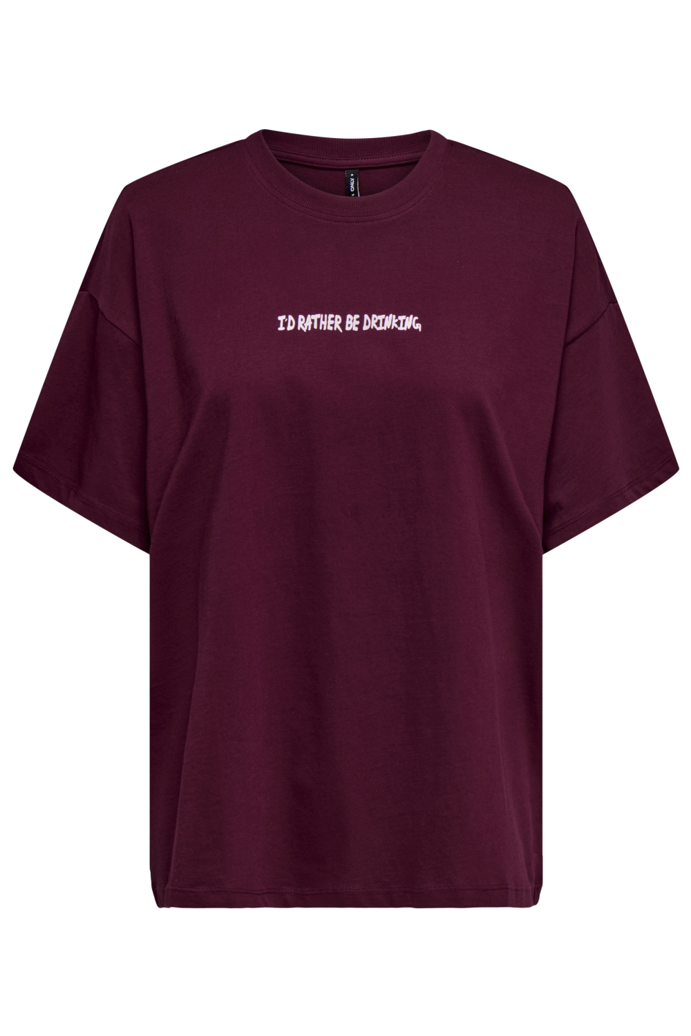 Dit casual T-shirt van Only voegt een speelse touch toe aan je zomeroutfits. Met zijn opvallende zinfandelkleur valt het shirt meteen op. De tekstprint "I'd rather be drinking" op de voorkant en het speelse wijnbar-illustratie op de achterkant maken dit T-shirt tot een unieke keuze voor een relaxte daguitstap of een gezellig avondje met vrienden. Dankzij de regular fit en de comfortabele korte mouwen biedt het niet alleen stijl maar ook draagcomfort, perfect voor zomerse dagen.