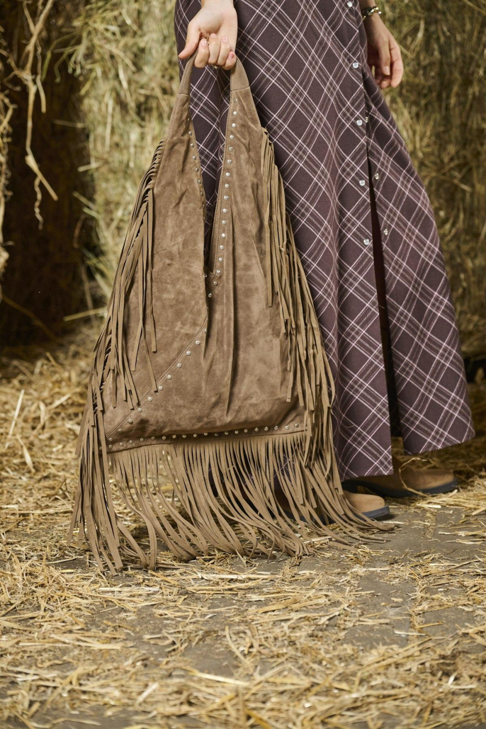 Deze stijlvolle tas van Only in de kleur Chocolate Martini is een elegante toevoeging aan je wintergarderobe. Gemaakt van 100% polyester voelt de tas zacht aan en biedt hij tegelijkertijd duurzaamheid. Het design is verrijkt met opvallende franjes en een reeks metalen studs, die de tas een speelse en toch robuuste uitstraling geven. Dankzij de ruime binnenkant ben je verzekerd van voldoende opbergruimte voor al je essentials, ideaal voor een dagje uit of een avondje met vrienden.