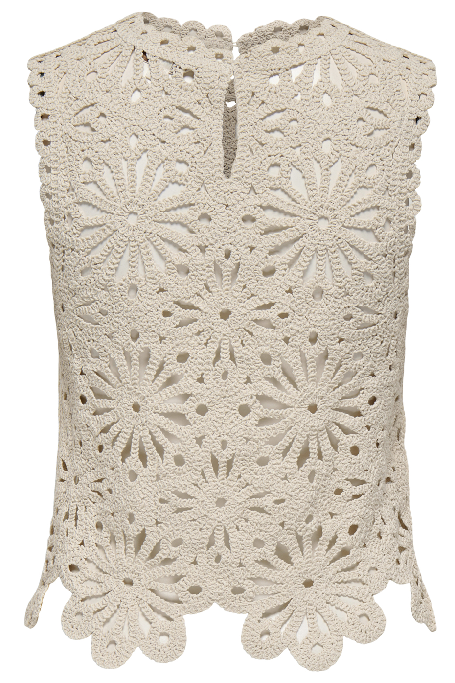 Deze casual top van Only is een verfijnde toevoeging aan je zomergarderobe. De crème kleur en het elegante haakpatroon geven dit mouwloze kledingstuk een speelse en stijlvolle uitstraling. Gemaakt van een comfortabele mix van 90% katoen en 10% acryl, voelt de stof zacht aan op je huid en biedt het de hele dag door draagcomfort. Dankzij de slim fit pasvorm sluit deze top mooi aan en accentueert het je figuur op een subtiele manier. De top heeft een ronde hals en wordt gekenmerkt door de speelse uitsnijdingen in het haakwerk, wat zorgt voor een lichte en luchtige look die perfect past bij zomerse temperaturen. Of je nu een dagje uit gaat met vrienden of een ontspannen tuinfeestje bezoekt, deze top is veelzijdig en makkelijk te combineren met zowel jeans als rokjes. Met deze stijlvolle Only top voeg je eenvoudig een vleugje vrouwelijkheid toe aan elke casual outfit.