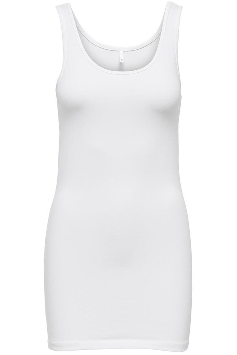 Deze witte top van Only is een veelzijdige basis voor je garderobe. Met een regular fit en een ronde halslijn, biedt deze mouwloze top een comfortabele en luchtige pasvorm die perfect is voor casual dagen. De halflange lengte maakt het gemakkelijk om te combineren met zowel jeans als rokjes, en dankzij de neutrale kleur past hij bij vrijwel elke outfit. Of je nu een ontspannen dag hebt of een casual avondje uit, deze Only top is een praktische keuze. De zachte en stretchy stof zorgt ervoor dat je de hele dag comfortabel blijft. Draag hem onder een blazer voor een nette look, of combineer met een favoriete jeans voor een relaxte uitstraling. Met deze basis top heb je een solide en stijlvolle aanvulling op je alledaagse outfit.