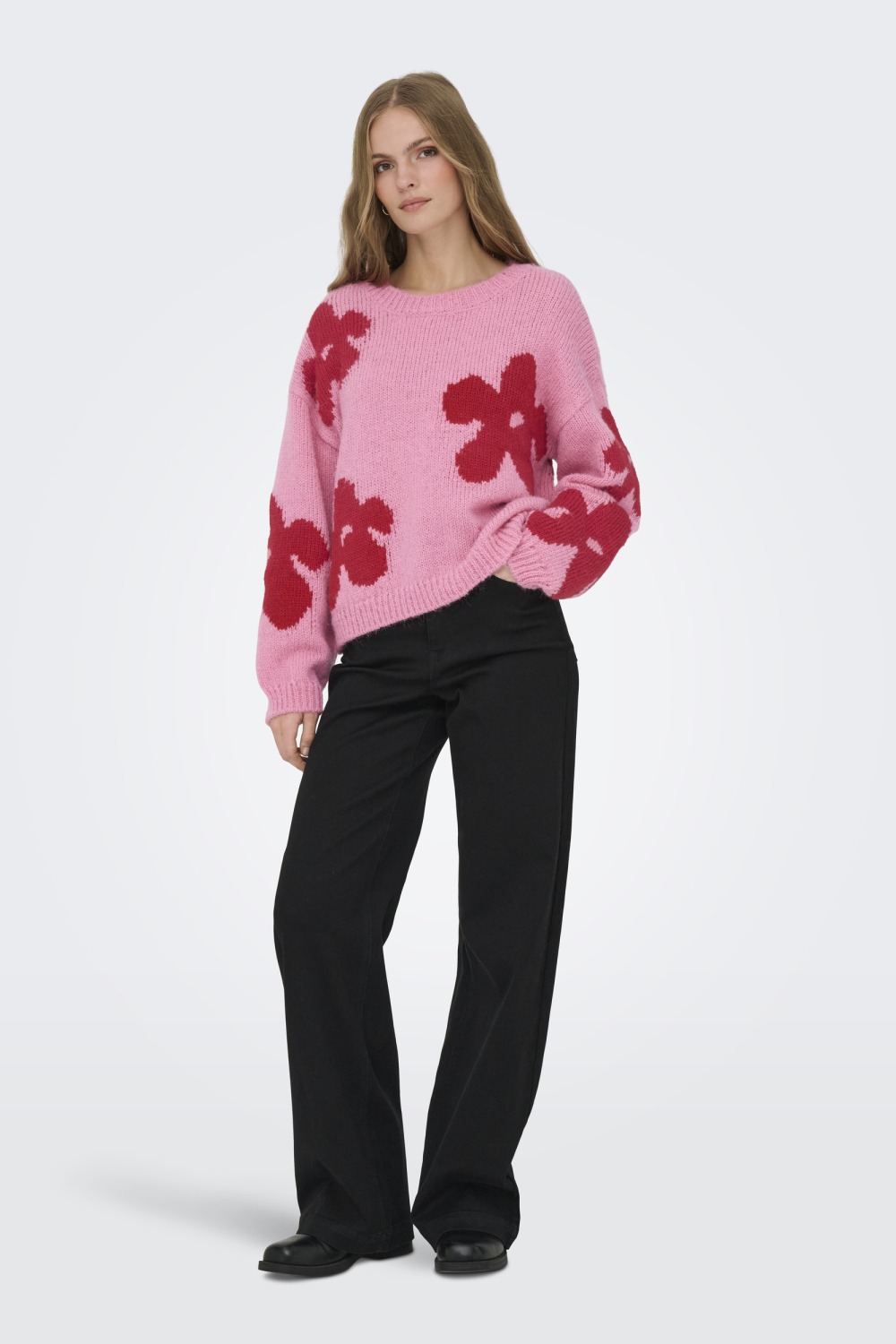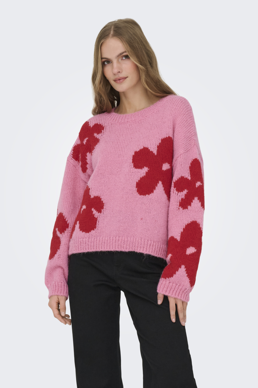 Deze levendige Only trui uit de Knitwear-collectie voegt een speels accent toe aan je wintergarderobe. Met een rijke roze kleur en opvallende rode bloemenprint, straalt deze trui vrolijkheid uit. De regular fit zorgt voor een comfortabele pasvorm, terwijl de ronde hals een klassiek tintje toevoegt. Gemaakt van 100% polyester, biedt de stof behaaglijke warmte tijdens koude dagen. Deze trui is perfect om te dragen wanneer je behoefte hebt aan een fleurige touch op een sombere winterdag. De lange mouwen en normale lengte maken deze damestrui ideaal voor diverse gelegenheden. Of je nu een dagje binnen doorbrengt of een casual wandeling maakt, deze trui levert altijd comfort en stijl. Combineer hem met een donkere jeans en boots voor een ontspannen look, of kies voor een nette broek voor een meer gepolijste outfit. De Only trui is een veelzijdige keuze die probleemloos past bij jouw persoonlijke stijl.