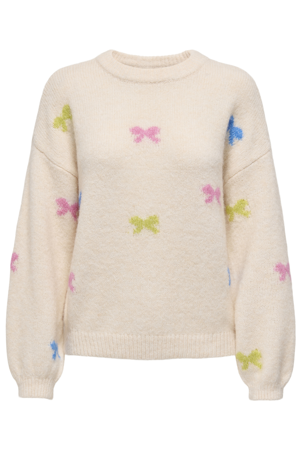 Deze Only damestrui is een charmante toevoeging aan je wintercollectie. Met een speels grafisch patroon van kleurrijke strikjes geeft deze trui een vrolijke twist aan je outfit. De trui heeft een regular pasvorm en een ronde hals, waardoor hij comfortabel valt en gemakkelijk te combineren is met verschillende stijlen. De lange mouwen en normale lengte zorgen voor extra warmte tijdens koude dagen. De zachte knitwear stof van deze Only trui maakt hem ideaal voor dagelijks gebruik, of je nu naar je werk gaat of een ontspannen weekend plannen hebt. De subtiele beige basiskleur zorgt ervoor dat de felle strikjes extra opvallen, wat dit kledingstuk een speelse en unieke uitstraling geeft. Combineer deze trui met een donkere jeans of een nette rok voor een casual en stijlvolle look die in elke situatie goed van pas komt.