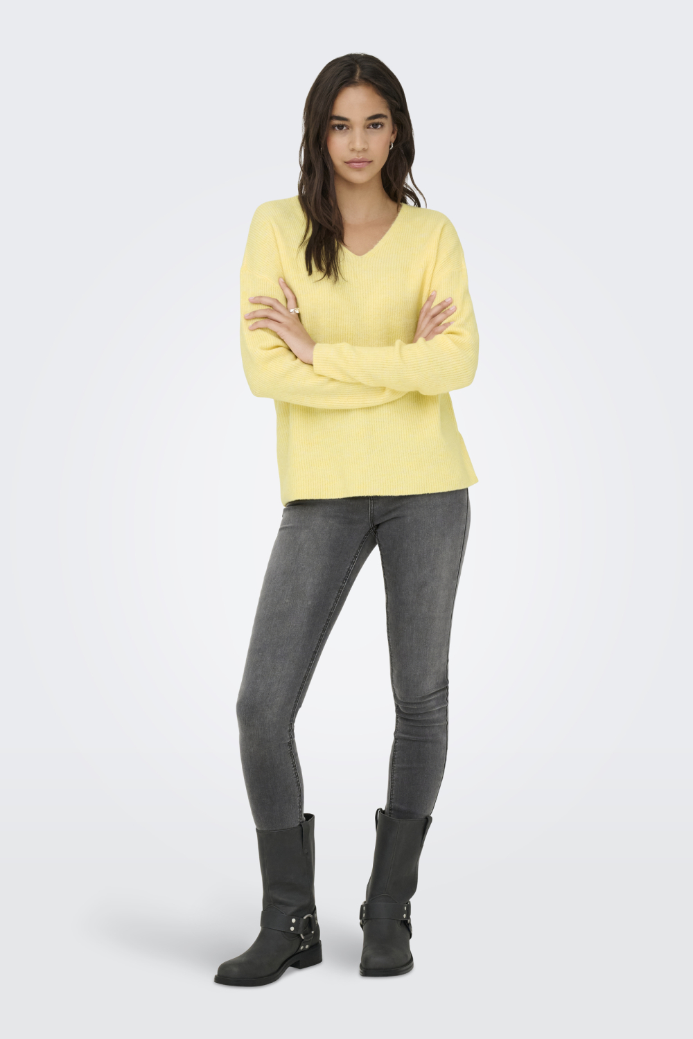 De gemêleerde trui van Only in de kleur Mellow Yellow/MELANGE is een opvallende toevoeging aan je wintergarderobe. Het comfort van de trui komt door de zachte samenstelling van 74% acryl, 24% polyester en 2% elastan. Deze combinatie zorgt voor een lichtgewicht trui met voldoende stretch, wat bijdraagt aan de regular fit pasvorm. De trui valt normaal qua lengte en heeft lange mouwen, waardoor hij ideaal is voor de koudere dagen. De V-hals geeft een subtiele en vrouwelijke uitstraling, perfect voor zowel informele als meer geklede gelegenheden. Met zijn frisse gele tint voegt deze knitwear trui van Only een vleugje kleur toe aan je outfit zonder te overheersen. Hij laat zich moeiteloos combineren met een donkere jeans en laarzen voor een casual look, of met een rok en stijlvolle accessoires voor een meer verfijnde uitstraling. Of je nu een dag op kantoor doorbrengt of een weekend lunch plant, deze trui biedt de juiste combinatie van stijl en comfort voor elke gelegenheid.