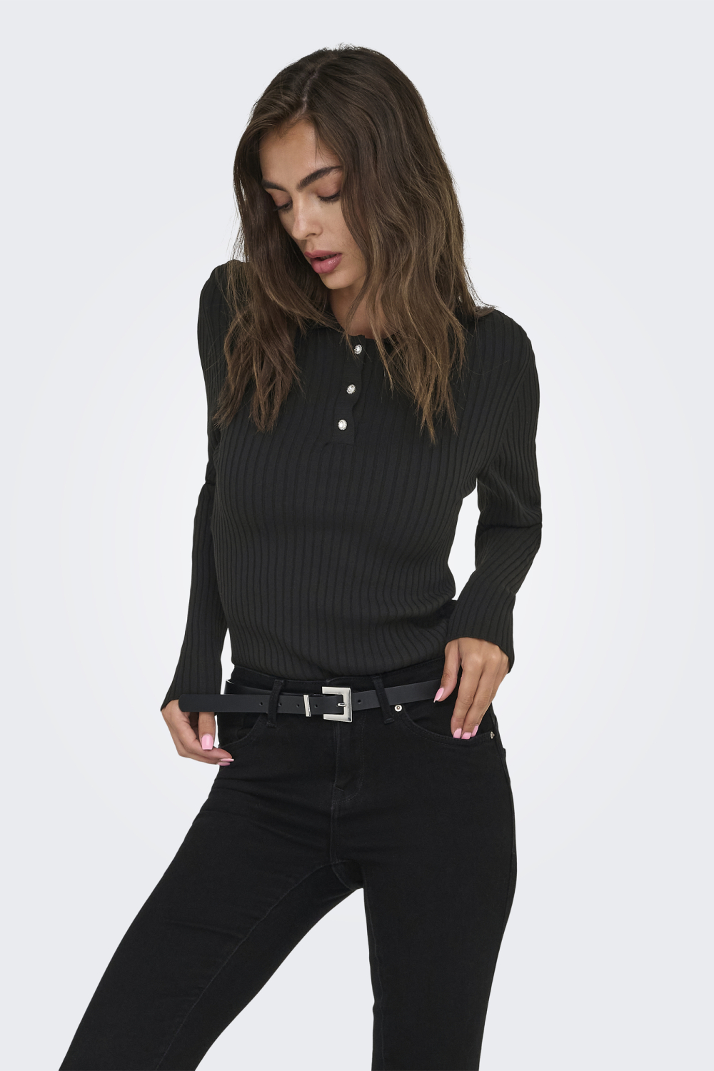 Deze elegante zwarte trui van Only is een veelzijdige aanvulling op je herfstgarderobe. Voorzien van een ribpatroon en gemaakt van 100% polyamide, biedt het een comfortabele en zachte stofervaring. De slim fit pasvorm en de puntkraag met knoopsluiting zorgen voor een subtiel verfijnde look. Deze trui is perfect voor verschillende gelegenheden, of je nu een dag op kantoor doorbrengt of een casual uitje plant met vrienden. Met het tijdloze design past deze Only trui moeiteloos bij diverse stijlen. Combineer hem met een zwartkleurige jeans voor een chique monochrome look, of draag hem over een rok voor een speelse uitstraling. De lange mouwen en normale lengte maken het een praktische keuze voor frisse herfstdagen, terwijl het ribpatroon en de knoopsluiting net wat extra's toevoegen. Een geweldige match voor je dagelijkse kledingcombinaties.
