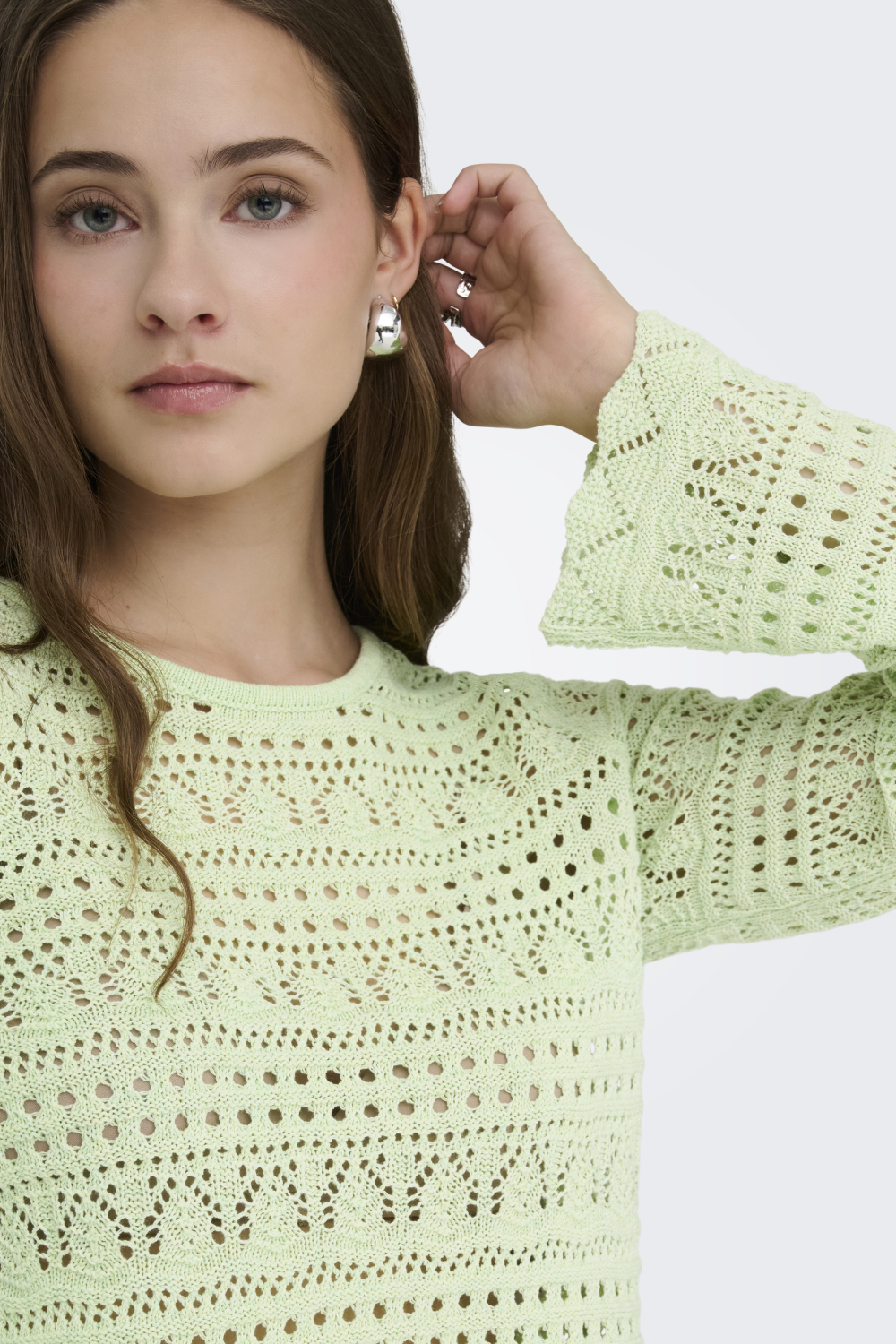 Deze stijlvolle trui van Only is een perfecte toevoeging aan de lente garderobe. Met een regular fit en gemaakt van een zachte mix van 70% katoen en 30% polyester, voelt deze trui comfortabel aan op de huid. De trui heeft een ronde halslijn en een prachtig ajourpatroon, wat zorgt voor een speelse en luchtige uitstraling. Het kortere model maakt deze knitwear ideaal voor die frisse lentedagen wanneer je iets lichts en luchtigs wilt dragen.