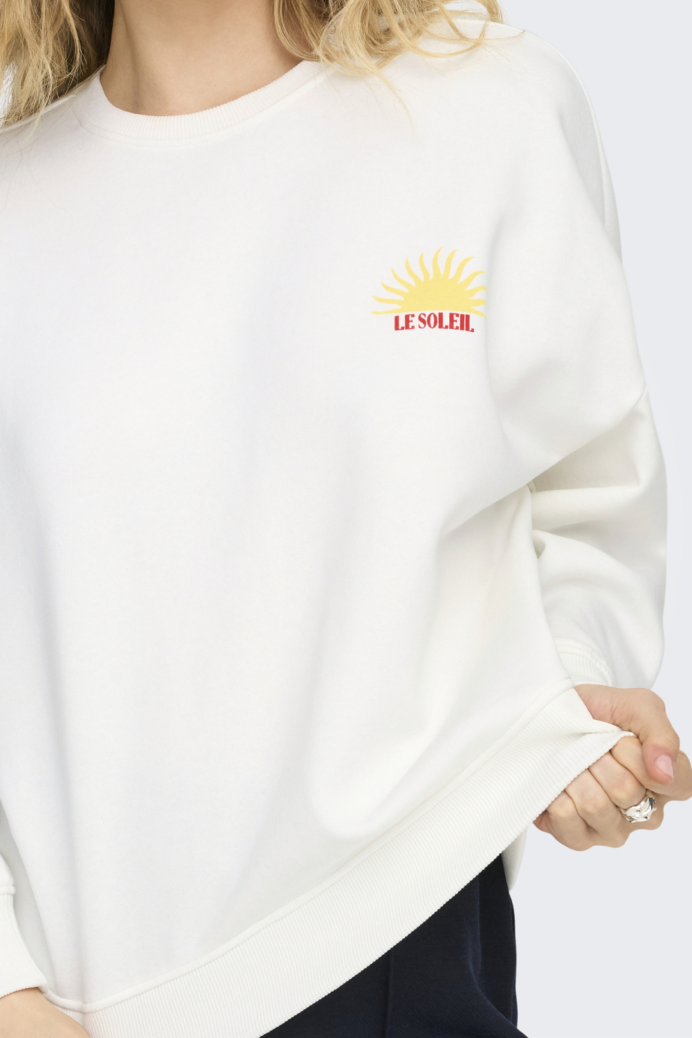 Deze casual trui van Only is een veelzijdige aanvulling voor jouw lente garderobe. Gemaakt van 60% katoen en 40% polyester, biedt het een comfortabele pasvorm die je zonder moeite de hele dag door kunt dragen. De opvallende grafische print met de tekst "Le Soleil" op de rug geeft deze trui een speelse touch. Met een ronde hals en lange mouwen, vormt deze trui de perfecte keuze voor een relaxte dag buiten of een gezellige avond met vrienden.
