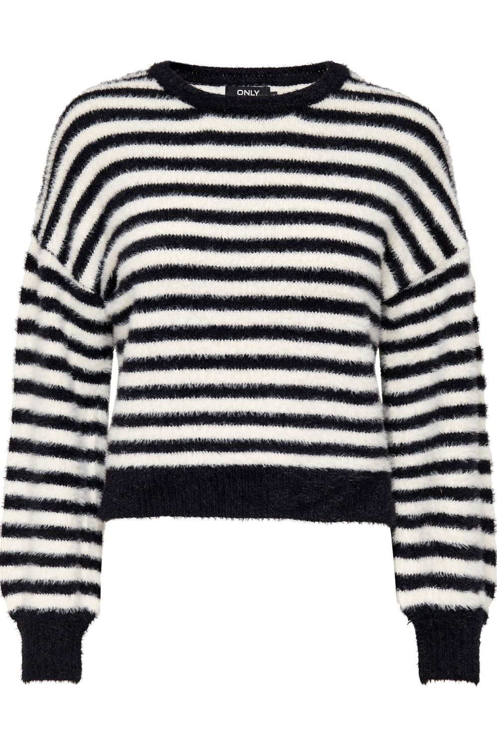 Deze stijlvolle trui van Only is ontworpen voor dames die op zoek zijn naar comfort en een modieuze uitstraling. De zwarte en witte strepen zorgen voor een tijdloos patroon dat moeiteloos past bij verschillende outfits. Gemaakt van een knusse mix van 70% nylon en 30% acryl, biedt deze trui warmte en zachtheid. De regular fit en ronde hals maken het een veelzijdig en gemakkelijk te combineren kledingstuk, ideaal voor de frisse herfstdagen.