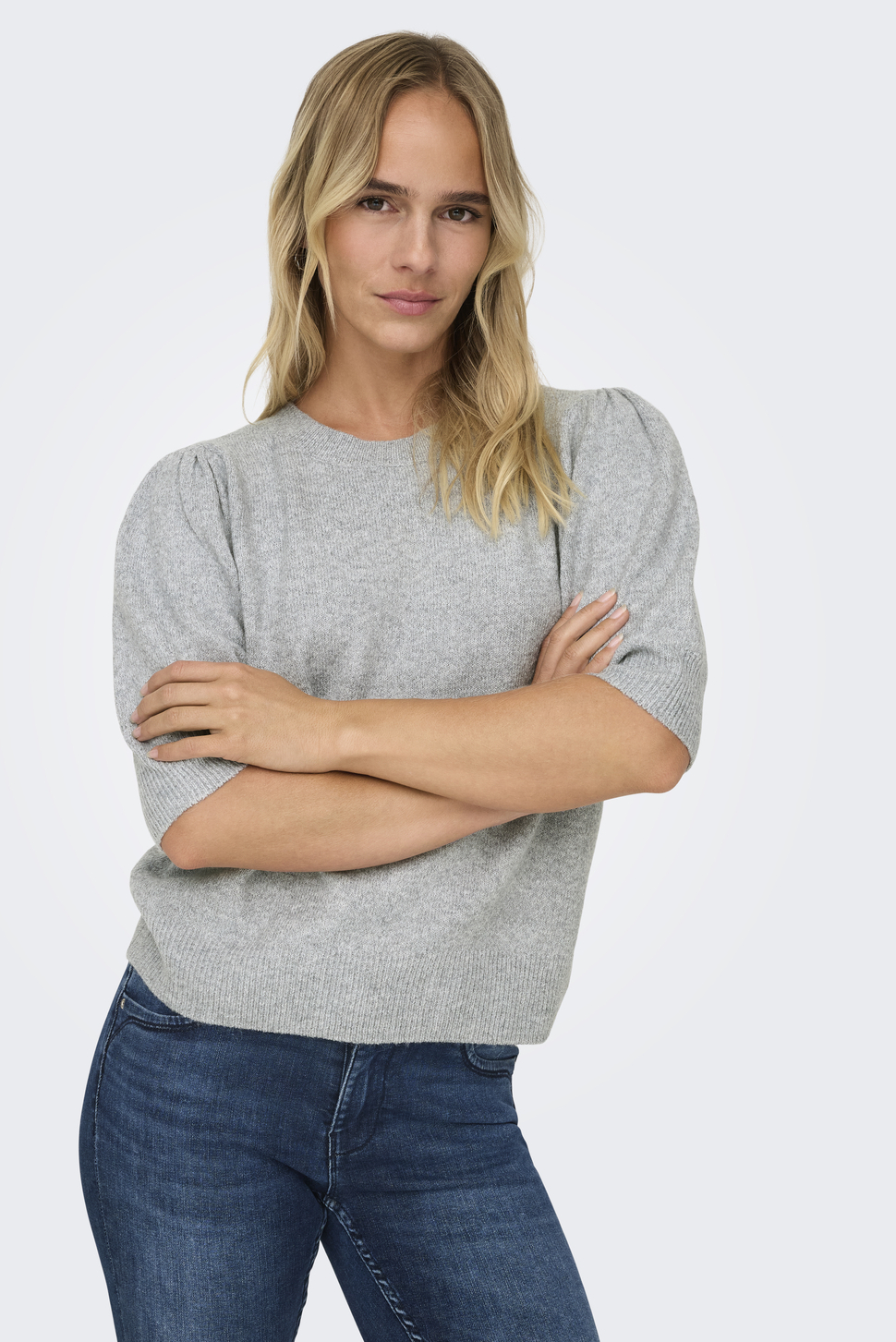 Deze gemêleerde lichtgrijze trui van Only is een perfecte aanvulling voor de garderobe van elke vrouw. De regular fit biedt een comfortabele pasvorm, terwijl de ronde hals en korte mouwen deze trui een moderne uitstraling geven. Het knitwear design zorgt voor een zachte en warme stof, ideaal voor dagelijks gebruik. De subtiele details zoals de ribgebreide boorden geven de trui een verfijnde afwerking. Met zijn tijdloze stijl is deze trui veelzijdig te combineren voor diverse gelegenheden. Of je nu een casual dag op kantoor hebt of een relaxte middag met vrienden, deze trui past zich moeiteloos aan jouw activiteiten aan. De normale lengte zorgt ervoor dat je hem makkelijk kunt combineren met jeans of een rok. Een duurzame keuze die niet alleen stijlvol is, maar ook lang meegaat in je collectie.