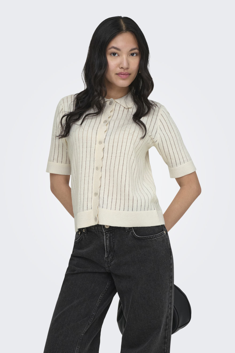 Dit stijlvolle vest van Only is een veelzijdige aanvulling voor je garderobe. Gemaakt van 70% gerecycled katoen en 30% gerecycled polyester, creëert het een zachte en duurzame keuze. De ajour details geven een verfijnde uitstraling, terwijl de korte mouwen en de normale lengte zorgen voor een comfortabele pasvorm. Met zijn subtiele egret kleur en puntkraag is dit vest makkelijk te combineren met verschillende outfits en ideaal voor dagelijks gebruik. Of je nu een casual dag voor de boeg hebt of een informele werkgelegenheid, dit vest biedt een toegankelijke stijl met een vleugje klasse. De knoopsluiting zorgt voor gemak en flexibiliteit, wat dit vest perfect maakt voor elk seizoen. Draag het over een eenvoudige top voor een moeiteloze look of combineer het met jeans voor een casual uitstraling. Dit Only vest is een betrouwbare keuze voor elke gelegenheid, dankzij zijn tijdloze design en bewuste materiaalgebruik.