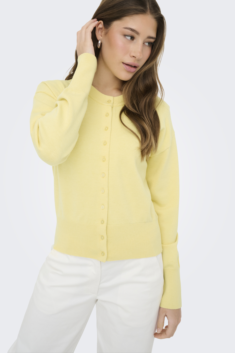 Dit Only damesvest, onderdeel van de knitwear collectie, is een veelzijdige aanwinst voor je garderobe. Het vest heeft een frisse gele kleur en is vervaardigd van een duurzame mix van 52% viscose, 28% polyester en 20% nylon. De regular fit en de zachte stof zorgen voor een comfortabele pasvorm. Met lange mouwen en een gemêleerd patroon, wordt het klassieke ontwerp geaccentueerd door de ronde hals en stevige knoopsluiting, wat je outfit een subtiele, vrouwelijke uitstraling geeft. Dit heerlijke Only vest past perfect bij zowel casual als meer formele gelegenheden. Draag het met een nette broek voor een stijlvolle werkdag of combineer het met een spijkerbroek voor een ontspannen look tijdens het weekend. De normale lengte maakt het geschikt voor iedere seizoenswissel, terwijl het elegante design je outfit net dat beetje extra geeft. Kortom, een tijdloos stuk dat niet in je kledingkast mag ontbreken.