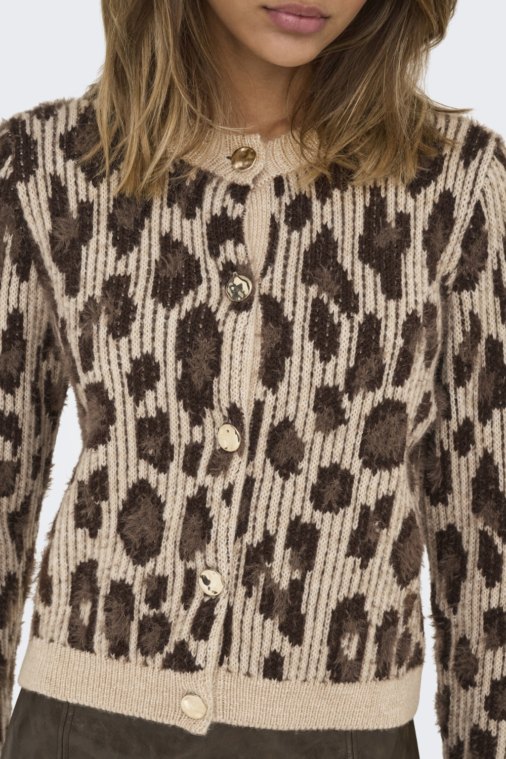 Dit elegante vest van Only uit de knitwear collectie is een verfijnde toevoeging aan je herfstgarderobe. Met een rijke combinatie van bruin- en beigetinten in een opvallend animal patroon, straalt het vest zowel stijl als flair uit. De regular pasvorm en ronde hals zorgen voor een comfortabele draagervaring zonder in te boeten op modieuze uitstraling. Dankzij de knoopsluiting kun je het vest makkelijk aan- en uittrekken, wat het ideaal maakt voor wisselvallige herfstdagen.