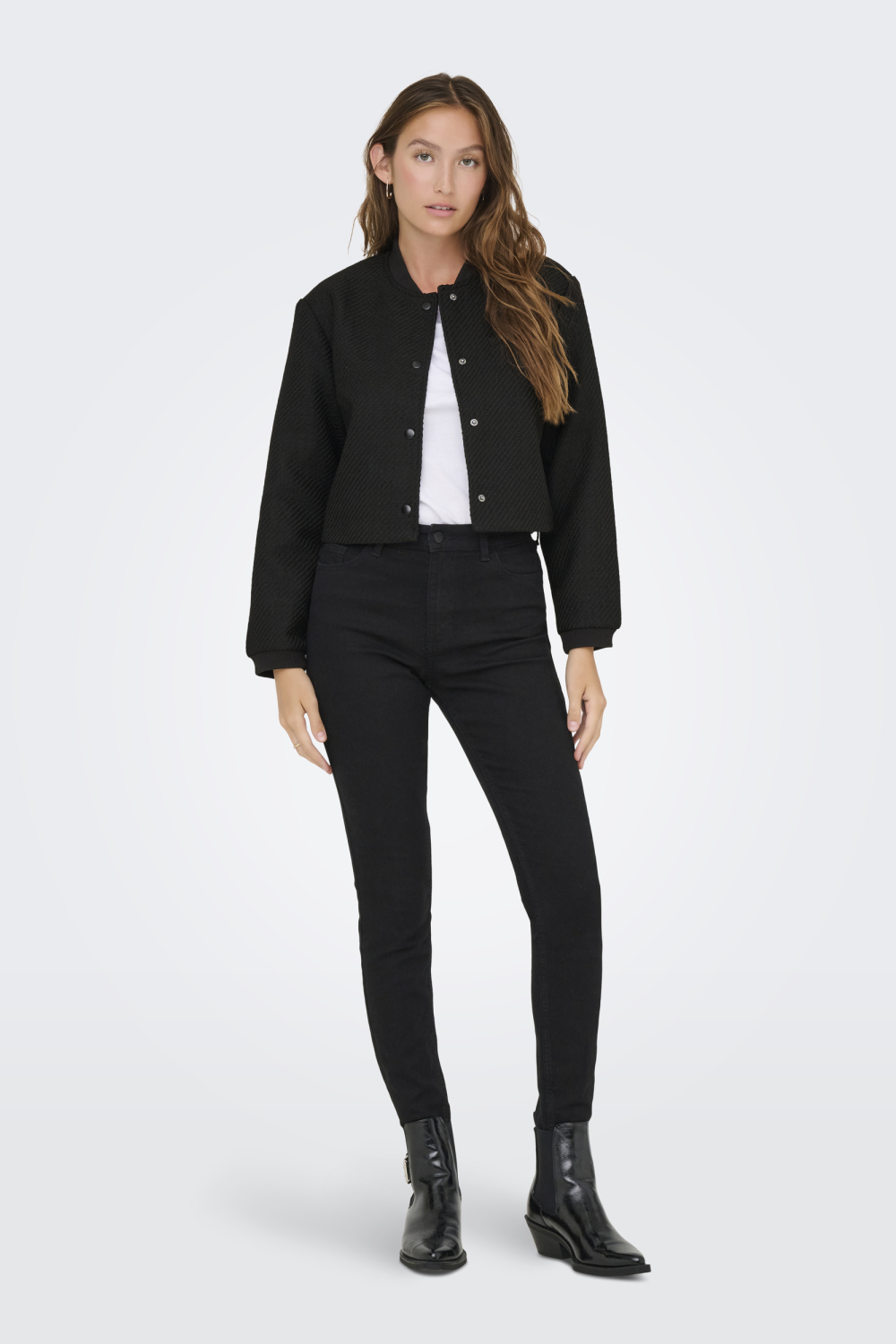 Dit casual vest van Only biedt een stijlvolle toevoeging aan jouw herfstgarderobe. Met een regular fit pasvorm en een rib kraag, geniet je van comfort en een ontspannen uitstraling. Het vest heeft een zwarte structuur en is afgewerkt met een handige drukknoopsluiting, wat zorgt voor een subtiele look. De korte lengte maakt het gemakkelijk te combineren met zowel een jeans als een rok, ideaal voor diverse gelegenheden. Gemaakt van 50% gerecycled polyester en 50% polyester, biedt dit vest een duurzame keuze zonder concessies te doen aan stijl. De lange mouwen zorgen voor extra warmte op frissere dagen, terwijl de structuur een unieke twist geeft aan een alledaags item. Perfect voor bijvoorbeeld een casual kantooroutfit of een gezellig middagje in de stad. Met deze veelzijdige toevoeging ben je altijd klaar voor het seizoen.