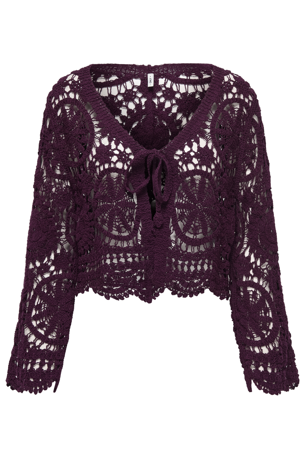 Dit casual vest van Only in de kleur GRAPE WINE is een verfijnde aanvulling op je lente garderobe. Het vest heeft een prachtige kanten patroon dat voor een elegante en vrouwelijke uitstraling zorgt. Gemaakt van 100% katoen, biedt het een ademende en comfortabele pasvorm die ideaal is voor de zachtere lentedagen. De V-hals en het strikkoord geven het vest een speelser karakter, terwijl de lange mouwen het geheel in balans brengen. De korte lengte van dit vest maakt het perfect om te dragen over een lichte zomerjurk of gecombineerd met een high-waisted jeans voor een meer casual look. Door het veelzijdige design is het geschikt voor zowel een ontspannen dagje uit als een informele bijeenkomst. Met deze regular fit kun je je moeiteloos stijlvol en comfortabel voelen, ongeacht de gelegenheid. Dit Only vest is een prachtige keuze die je garderobe subtiel klassiek flair geeft.