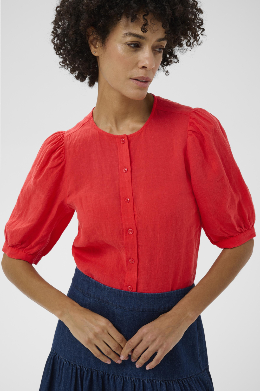 Deze poppy rode blouse van Part Two is een stijlvolle aanvulling op je zomergarderobe. Gemaakt van 100% linnen, zorgt de lichte stof voor een aangename draagervaring, perfect voor warme dagen. De blouse heeft een casual stijl met een ronde hals en een knoopsluiting die het geheel een moderne uitstraling geven. De korte mouwen met subtiele plooien voegen een vleugje elegantie toe, waardoor het ideaal is voor zowel informele bijeenkomsten als een dagje uit in de stad. De regular fit van de blouse zorgt voor een comfortabele pasvorm die moeiteloos kan worden gecombineerd met verschillende stijlen. Draag het met een lichte jeans of een rok voor een frisse zomerse look. De structuur in de stof voegt net dat beetje extra detail toe, waardoor je een verfijnde uitstraling hebt zonder je in te spannen. Of je nu op zoek bent naar iets voor dagelijks gebruik of een lichte, stijlvolle oplossing voor een speciale gelegenheid, deze blouse is een veelzijdige keuze die je niet wilt missen.