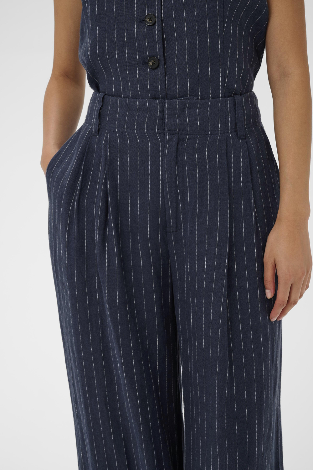 De Part Two broek met een klassieke wide leg pasvorm is een perfecte keuze voor zomerse dagen. Gemaakt van 100% linnen, biedt deze broek niet alleen draagcomfort maar ook een ademende stof, ideaal voor warme temperaturen. Met een donkerblauwe streep en regular waist, creëert het een elegante en tijdloze uitstraling. De knoop- en ritssluiting voegt functionaliteit toe, terwijl de steekzakken een ongedwongen en praktische touch geven. Draag deze broek in een casual setting en geniet van de veelzijdigheid die het biedt. Of je nu een informele lunch hebt of een dag in de stad doorbrengt, deze broek matcht moeiteloos met een eenvoudig T-shirt of een elegante blouse. Combineer met sandalen of zomerse sneakers voor een relaxte look. Met zijn normale lengte en duurzame materiaal, kun je rekenen op een stijlvolle aanvulling op je garderobe die seizoenen meegaat.