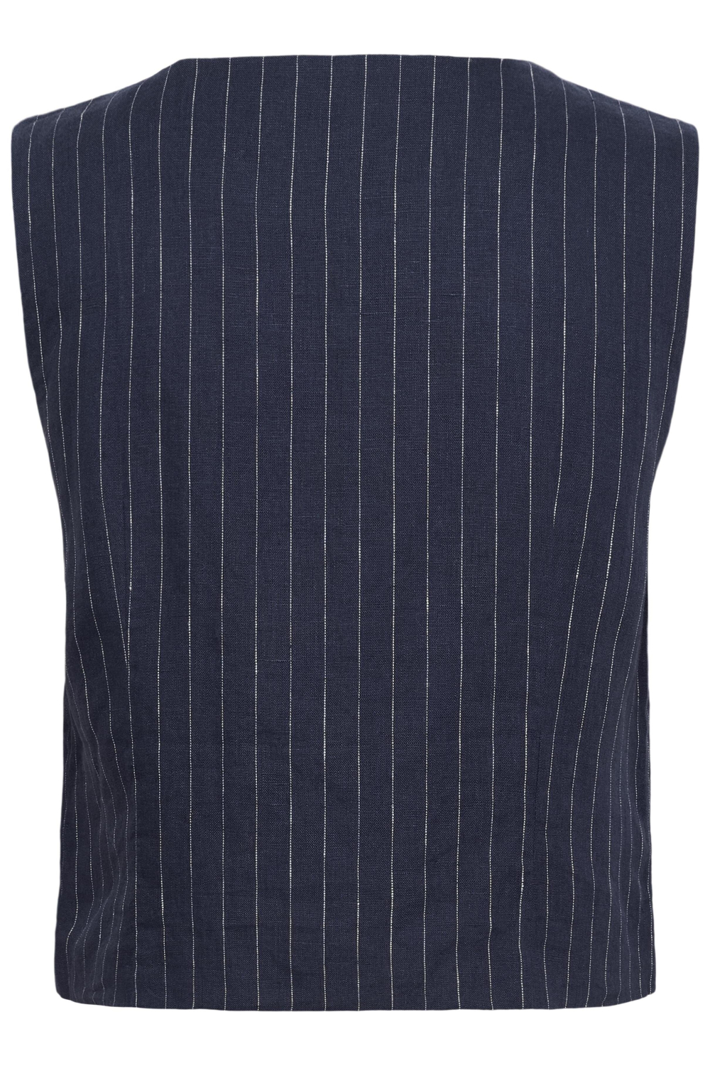 Dit stijlvolle, gestreepte gilet van Part Two is een must-have voor de zomergarderobe. Gemaakt van 100% linnen, biedt het een lichte en ademende ervaring die ideaal is voor warme dagen. De regular fit en ronde halslijn zorgen voor een ontspannen en toch verfijnde uitstraling. De knoopsluiting aan de voorkant voegt een klassieke touch toe, terwijl het mouwloze ontwerp perfect is voor een casual look. Met z’n tijdloze marineblauwe kleur en subtiele witte strepen, is dit gilet gemakkelijk te combineren met verschillende outfits. Draag het over een zomers T-shirt voor een dagje uit in de stad of combineer het met een elegante blouse voor een avondje uit. Zijn veelzijdigheid maakt het geschikt voor zowel informele als semi-formele gelegenheden. Kies voor een zorgeloze maar stijlvolle look, of het nu voor een lunch met vrienden is of een ontspannen middag op het terras.