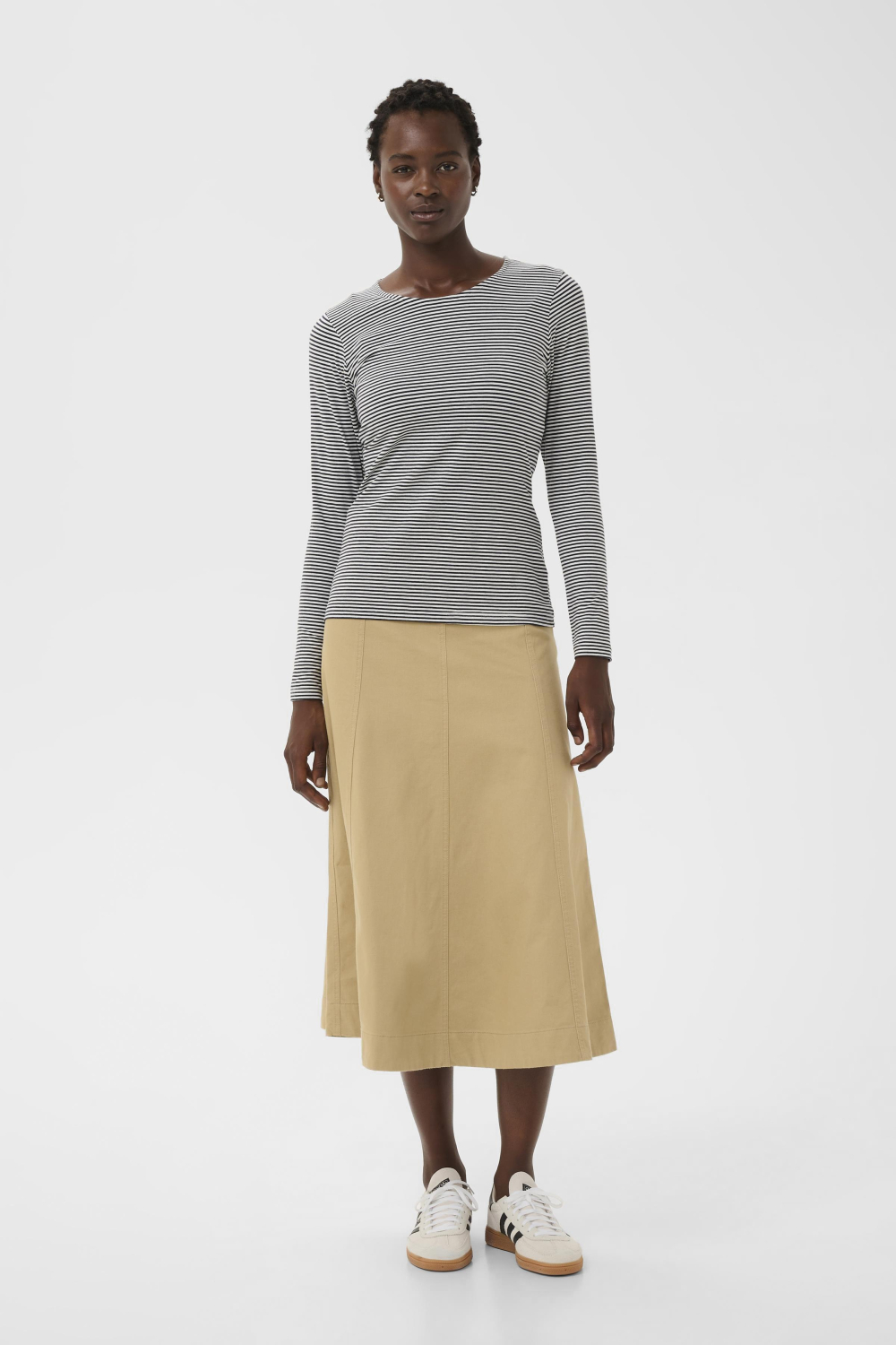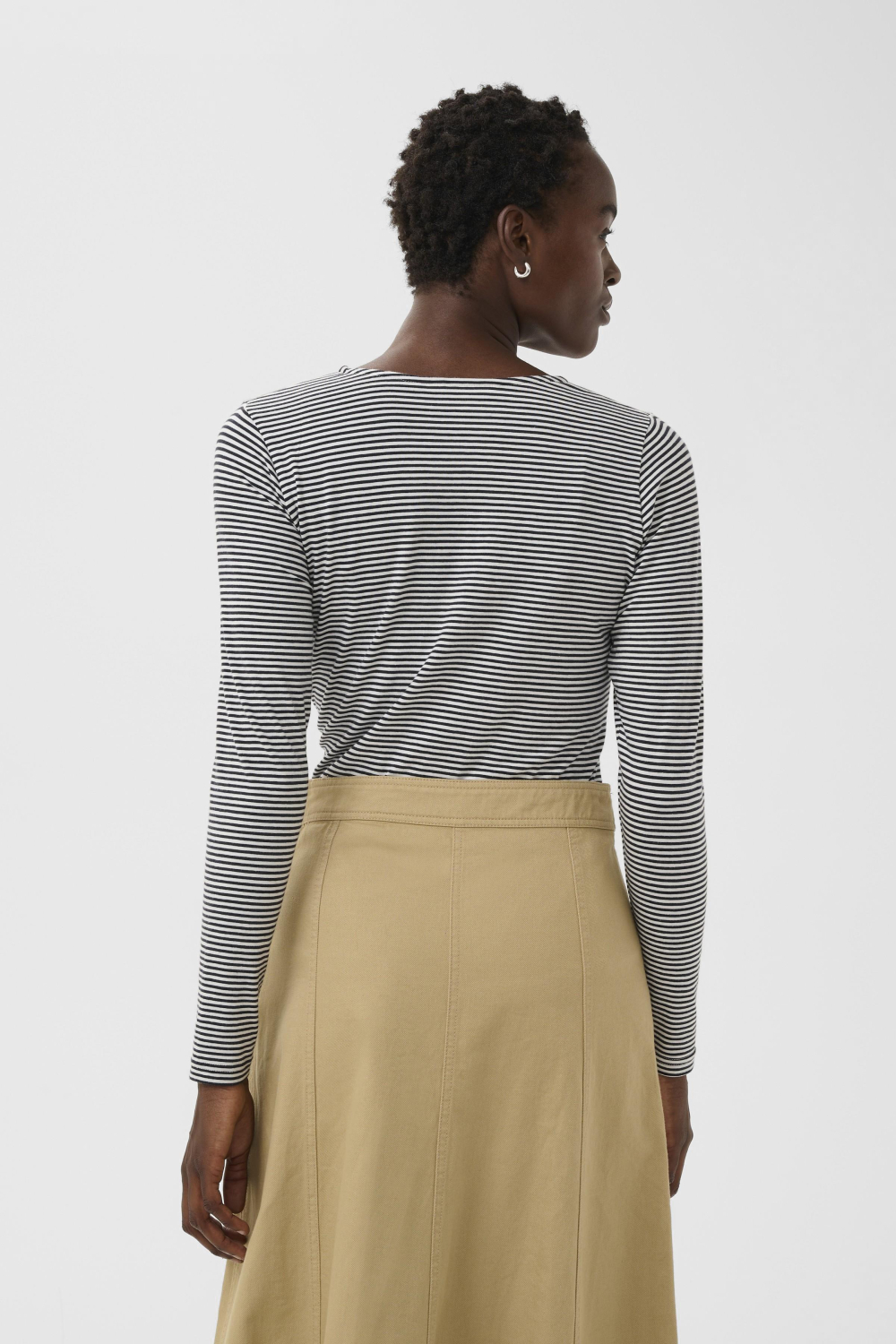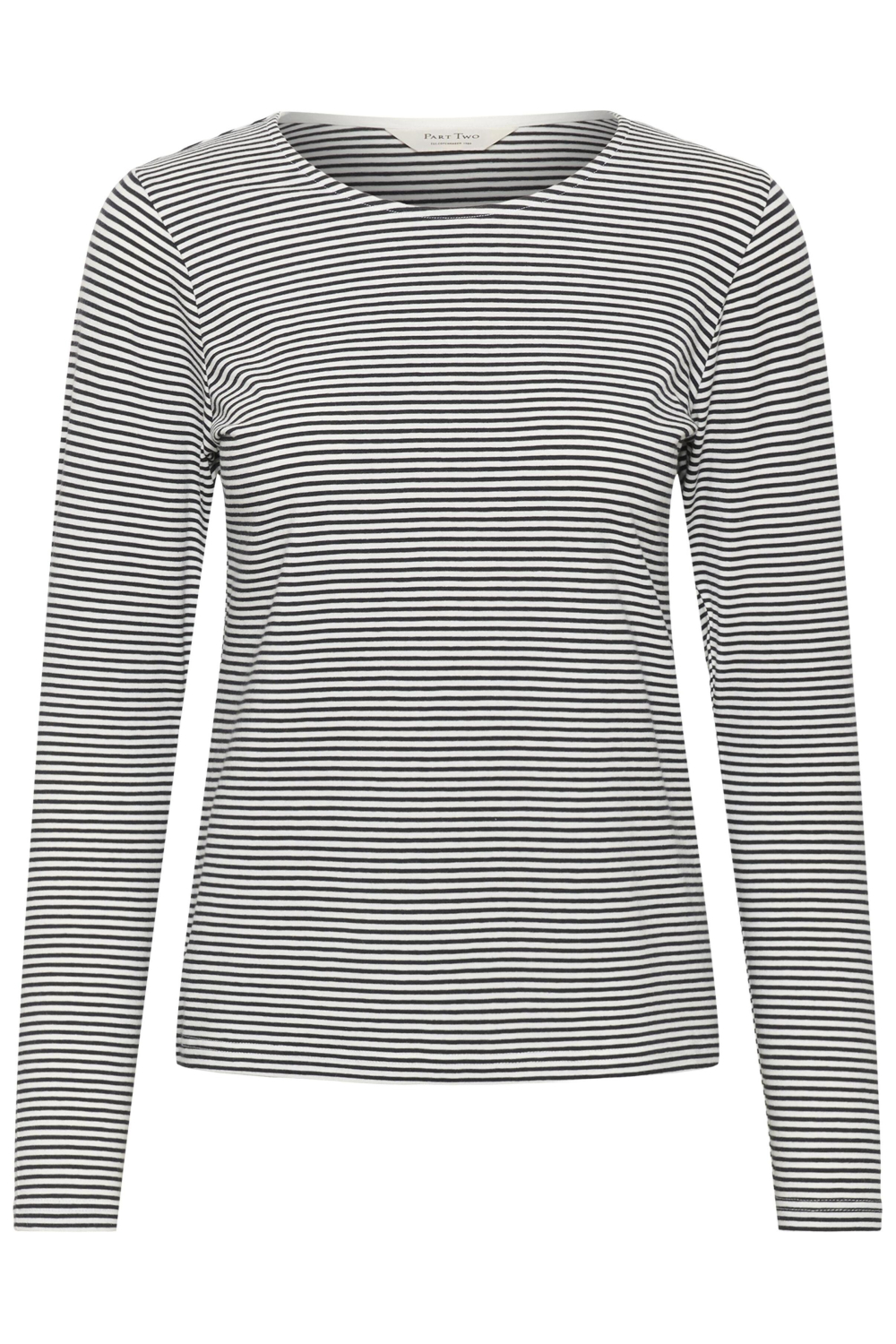 Dit elegante gestreepte T-shirt van Part Two is een prachtige aanvulling voor je lentegarderobe. Het shirt heeft een subtiele zwart-witte streep en een ronde halslijn die een klassieke uitstraling geeft. De lange mouwen in combinatie met de slim fit pasvorm zorgen voor een flatterend silhouet dat comfortabel en veelzijdig is. Gemaakt van 50% modal, 44% organisch katoen en 6% elastan, biedt het T-shirt zowel duurzaamheid als een zachte touch. Het ontwerp van dit Part Two T-shirt is ideaal voor casual dagen, maar kan ook makkelijk worden gestyled voor meer verfijnde gelegenheden. Combineer het met een rok of een jeans voor een moeiteloos stijlvolle look. Perfect voor een dag op kantoor, een gezellige lunch of een ontspannen weekend uit. Dit T-shirt is niet alleen een modieuze, maar ook een duurzame keuze die gemakkelijk bij verschillende outfits past.