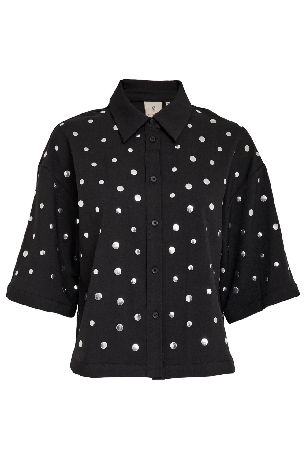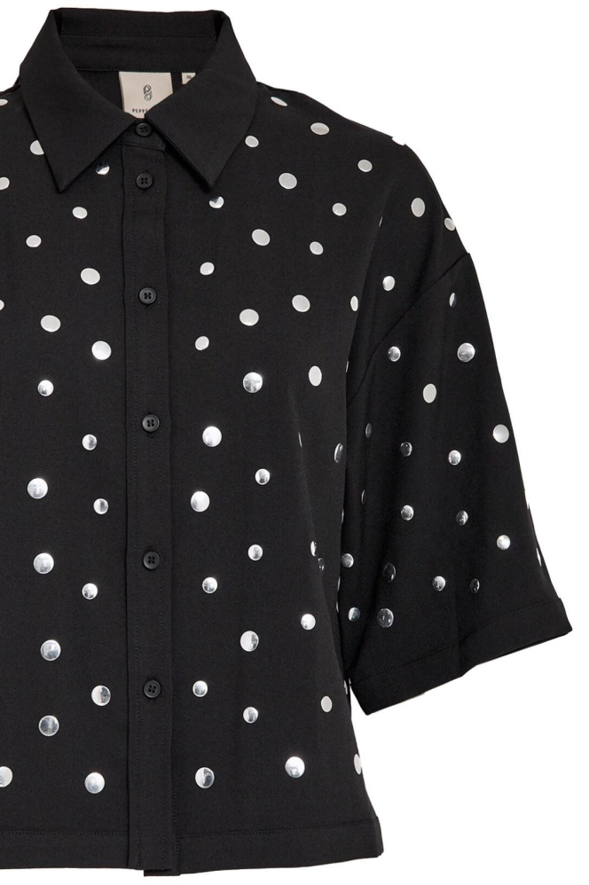 Deze opvallende zwarte blouse van Peppercorn is een stijlvolle aanvulling op je wintergarderobe. Met een oversized pasvorm biedt het comfort en een eigentijdse look. De studs over de hele voorkant geven een speels patroon dat meteen opvalt. Gemaakt van een comfortabele mix van polyester en elastaan, kun je rekenen op een fijne stretch voor ultiem draaggemak. Deze blouse, met zijn klassieke puntkraag en handige knoopsluiting, is perfect voor informele settings. Dankzij het casual ontwerp is deze blouse ideaal voor diverse gelegenheden, van een gezellige avond met vrienden tot een ontspannen dag op kantoor. De korte mouwen en het korte ontwerp maken het een veelzijdig item dat je makkelijk kunt combineren met je favoriete jeans of rok. Of je nu op zoek bent naar iets om je dagelijkse look op te frissen of een speciaal statement wilt maken, deze Peppercorn blouse biedt een unieke stijl die makkelijk te dragen en te combineren is.