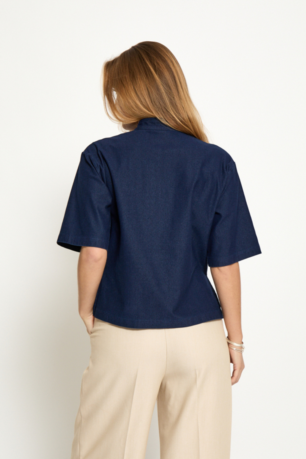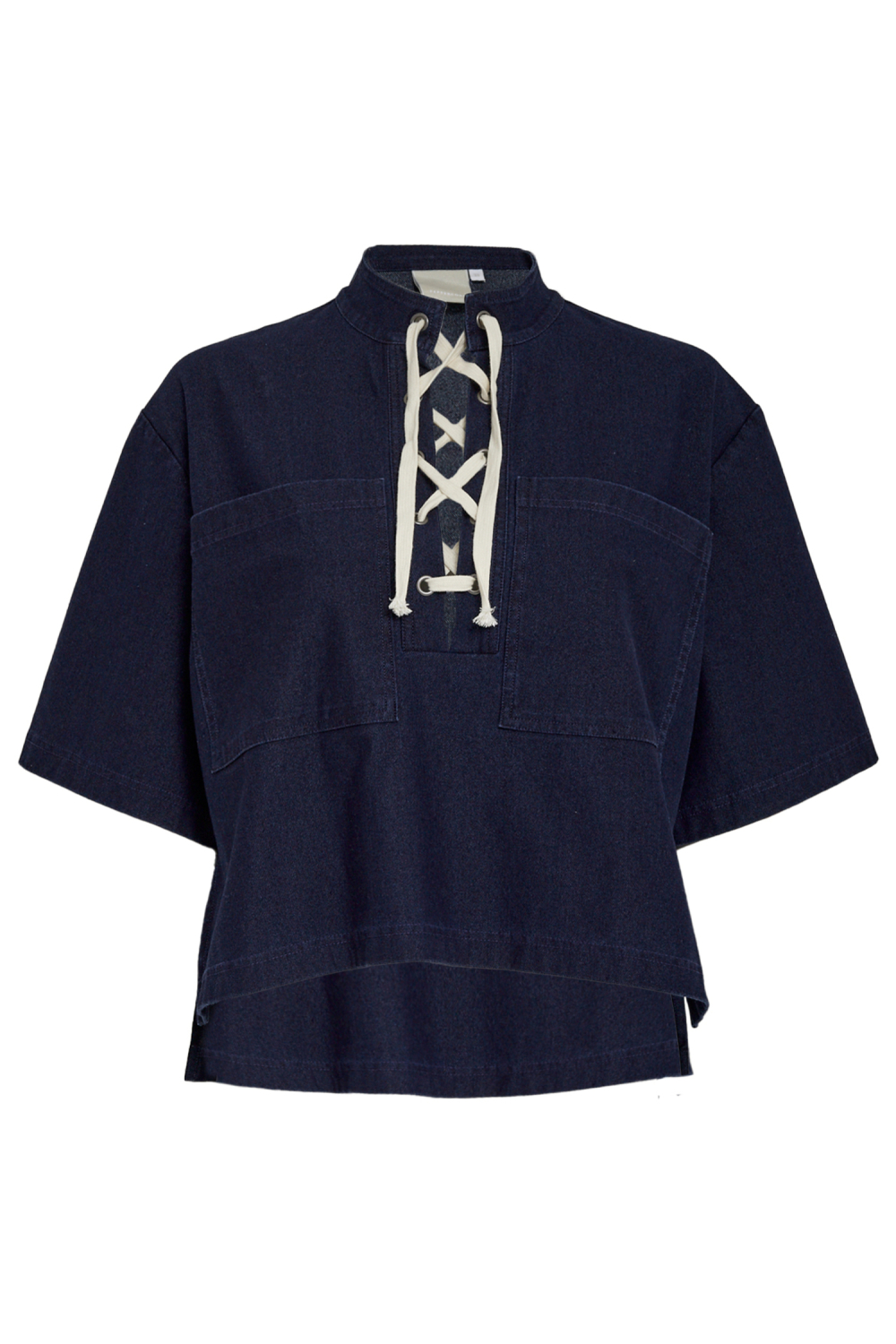 Deze stijlvolle blauwe blouse van Peppercorn is een prachtige aanvulling op je lentegarderobe. Gemaakt van een hoogwaardige mix van katoen, polyester en elastaan, biedt het comfort in een casual oversized pasvorm. Deze blouse heeft een moderne ronde hals en een unieke sluiting met een strikkoord, wat zorgt voor een subtiele twist aan je outfit. De korte mouwen en rinsewash geven het geheel een frisse uitstraling, perfect voor de warmere dagen. Dankzij het tijdloze denim ontwerp laat deze blouse zich eenvoudig combineren met verschillende stijlen. Ideaal voor een casual dagje uit, met een lichte broek of jeans voor een relaxte look. De borstzakken bieden niet alleen praktische voordelen maar dragen ook bij aan de charme van het ontwerp. Of je nu een middag in de stad doorbrengt of een informele bijeenkomst bijwoont, deze Peppercorn blouse geeft je een nonchalante maar verzorgde uitstraling die altijd in de smaak valt.