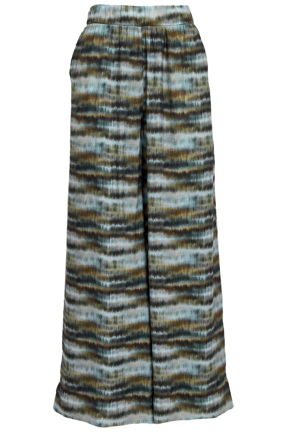 Deze elegante broek van Peppercorn, in de Mermaid Green Print, is een perfecte aanvulling op je garderobe. Met de wide leg pasvorm en het high waist ontwerp biedt deze broek een comfortabele maar stijlvolle look. De grafische print voegt een unieke touch toe, terwijl de combinatie van 75% viscose en 25% polyamide zorgt voor een lichte en zachte stof die de hele dag door fijn aanvoelt. Dankzij de elastische boord en de praktische steekzakken is deze broek niet alleen modieus, maar ook functioneel voor dagelijks gebruik. Deze Peppercorn broek is ideaal voor de herfst en kan zowel casual als in een meer formele setting gedragen worden. Combineer hem met een eenvoudige blouse voor een dag op kantoor of draag hem met een losse trui voor een ontspannen weekendlook. De normaal vallende lengte van de broek maakt het eenvoudig te combineren met verschillende schoenen, van sportieve sneakers tot elegante enkellaarsjes. Of je nu op zoek bent naar iets voor een dagelijkse outfit of een speciaal evenement, met deze broek maak je altijd een stijlvolle indruk.