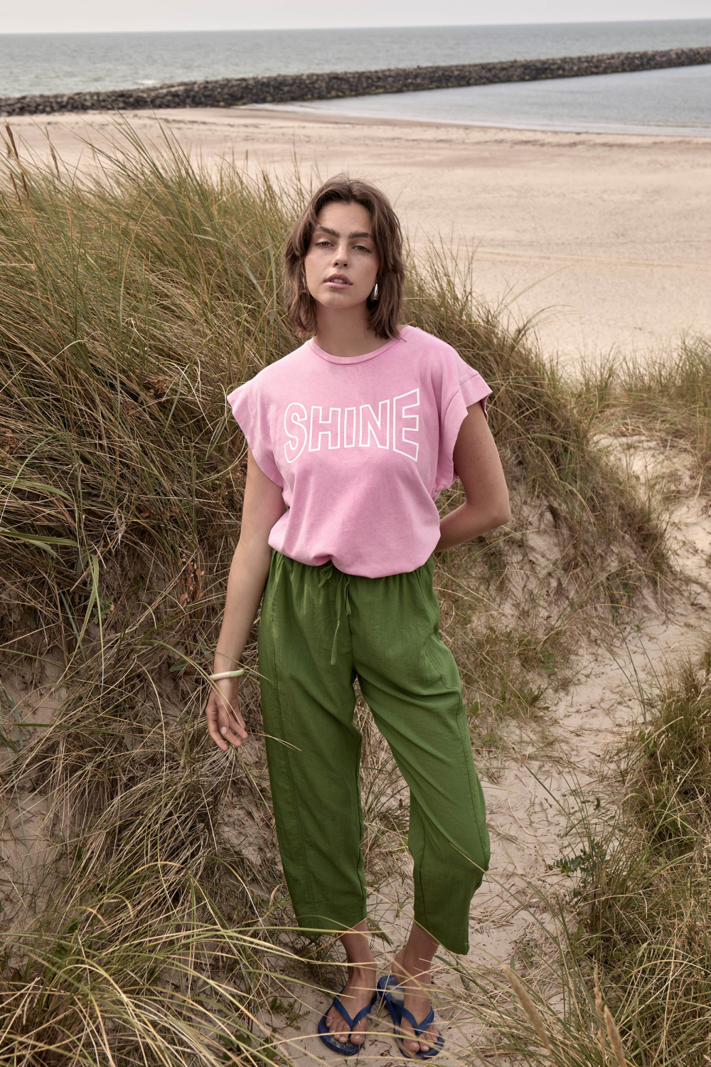 Deze stijlvolle Peppercorn broek in de kleur Cactus is een veelzijdige aanvulling voor je zomergarderobe. Gemaakt voor dames, heeft deze broek een regular pasvorm die zorgt voor comfort zonder in te boeten op stijl. De broek beschikt over praktische steekzakken en een elastische boord, wat hem perfect maakt voor casual dagen. Dankzij de regular waist en de 7/8 lengte krijgt de broek een moderne uitstraling die makkelijk te combineren is met zowel sandalen als sneakers. Ideaal voor een ontspannen zomerdag of een casual uitje, deze broek biedt je een fris en levendig uiterlijk. De luchtige stof voelt comfortabel aan, ideaal voor warmere dagen aan het strand of een picknick in het park. Combineer deze Peppercorn broek met een eenvoudige top voor een moeiteloos stijlvolle look. Of je nu een wandeling maakt langs de boulevard of geniet van een relaxte middag, deze broek is altijd een passende keuze.