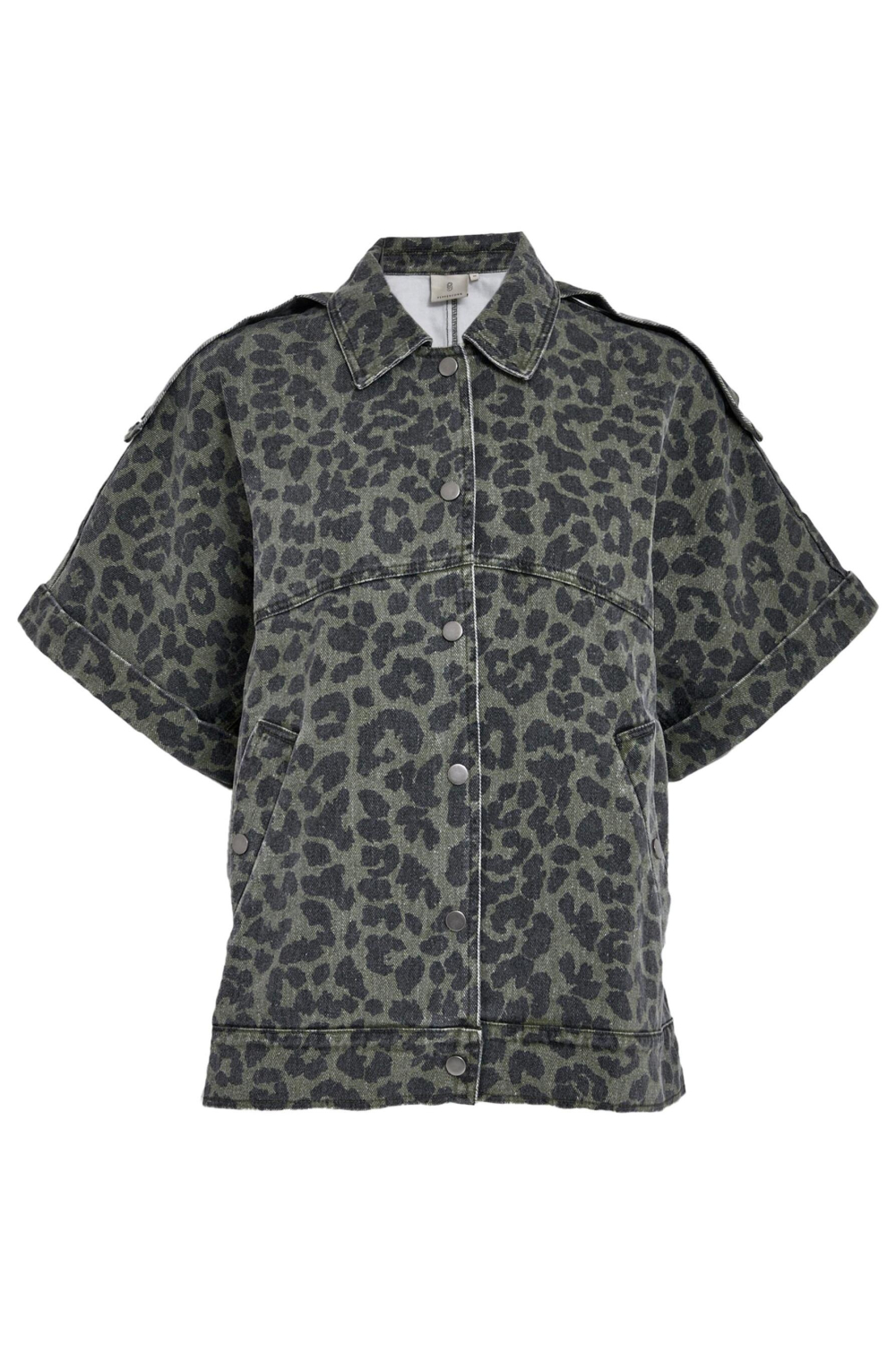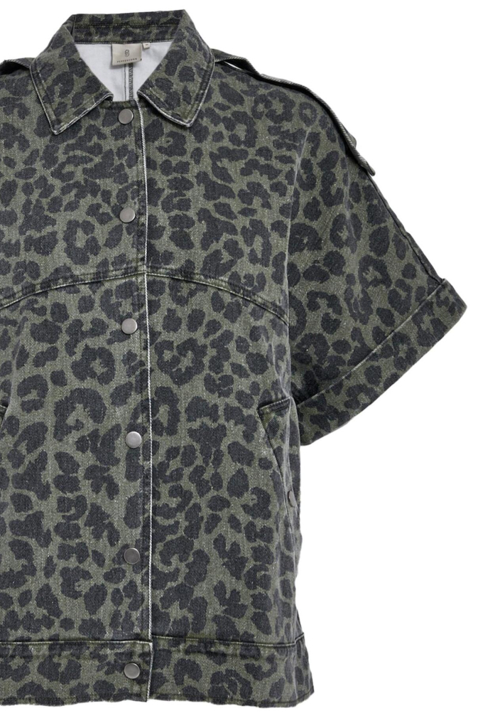 Deze casual damesjas van Peppercorn, in de bijzondere kleur '3627P Grape Leaf Print', biedt een unieke stijl die je garderobe zeker opfleurt. Het oversized model is vervaardigd uit een comfortabele katoenmix, bestaande uit 98% katoen en 2% elastaan, wat zorgt voor een fijne pasvorm. De jas heeft een stoere animal print, een puntkraag en een functionele drukknoopsluiting. De korte mouwen geven het geheel een speelse uitstraling, ideaal voor de herfst. Met zijn steekzakken is deze tussenjas zowel praktisch als stijlvol. Het ontbreken van een voering houdt de jas licht, perfect voor een ontspannen dagje uit of een casual bijeenkomst. Combineer hem met je favoriete jeans en sneakers voor een moeiteloze look. Deze jas voegt een vleugje avontuur toe aan je dagelijkse outfit en is ideaal om te dragen bij wisselvallig weer, of gewoon als stijlvol item in je herfstgarderobe. Meer informatie: De totale lengte is 62 cm bij maat XS/S.
