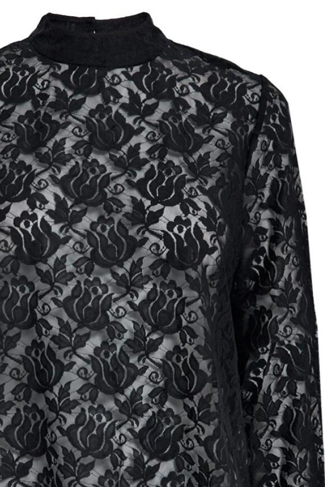 Dit elegante zwarte T-shirt van Peppercorn is een verfijnde toevoeging aan je casual wintergarderobe. De licht transparante kanten stof creëert een subtiele, stijlvolle look die perfect is voor een avondje uit. Het hoge halsontwerp geeft een moderne twist, terwijl de lange mouwen zorgen voor extra warmte tijdens koudere dagen. Gemaakt van 90% polyamide en 10% elastaan, biedt dit T-shirt zowel flexibiliteit als comfort, passend bij een diverse reeks outfits. Of je nu een ontspannen dagje uit plant of een informeel feestje hebt, dit T-shirt laat zich eenvoudig combineren. Draag het met een aangesloten jeans voor een casual uitstraling, of style het met een nette rok voor een meer verfijnde look. De regular fit zorgt ervoor dat je je comfortabel voelt, zonder in te boeten aan stijl. Dit zwarte kanten T-shirt van Peppercorn is jouw veelzijdige keuze voor elke gelegenheid.