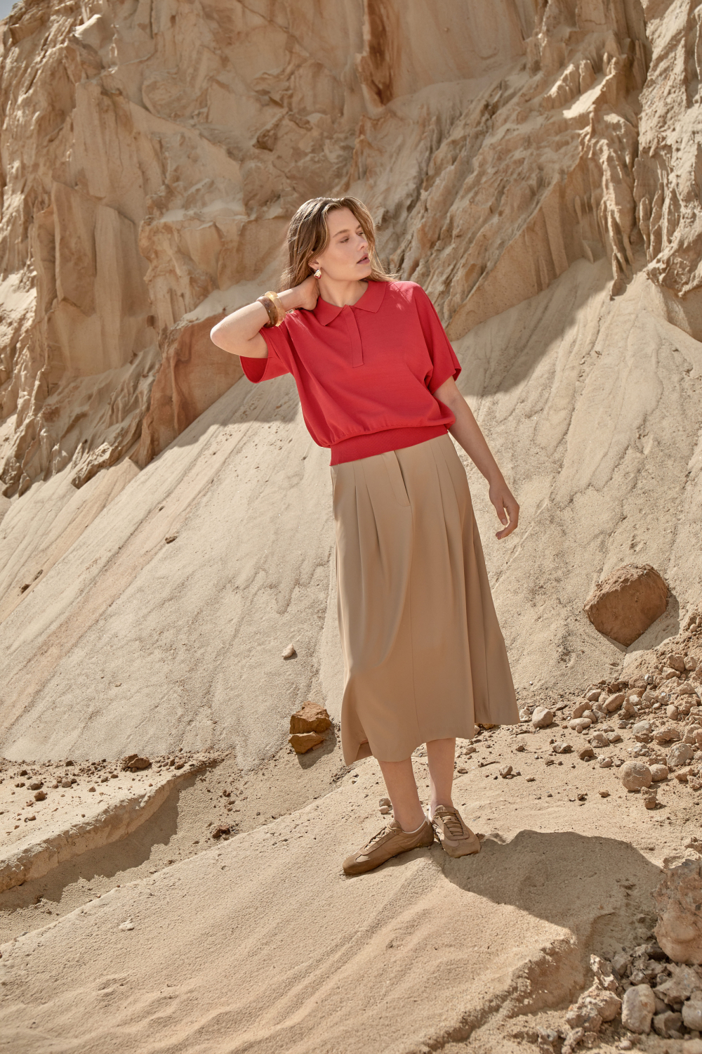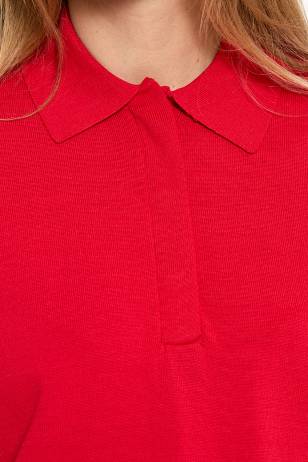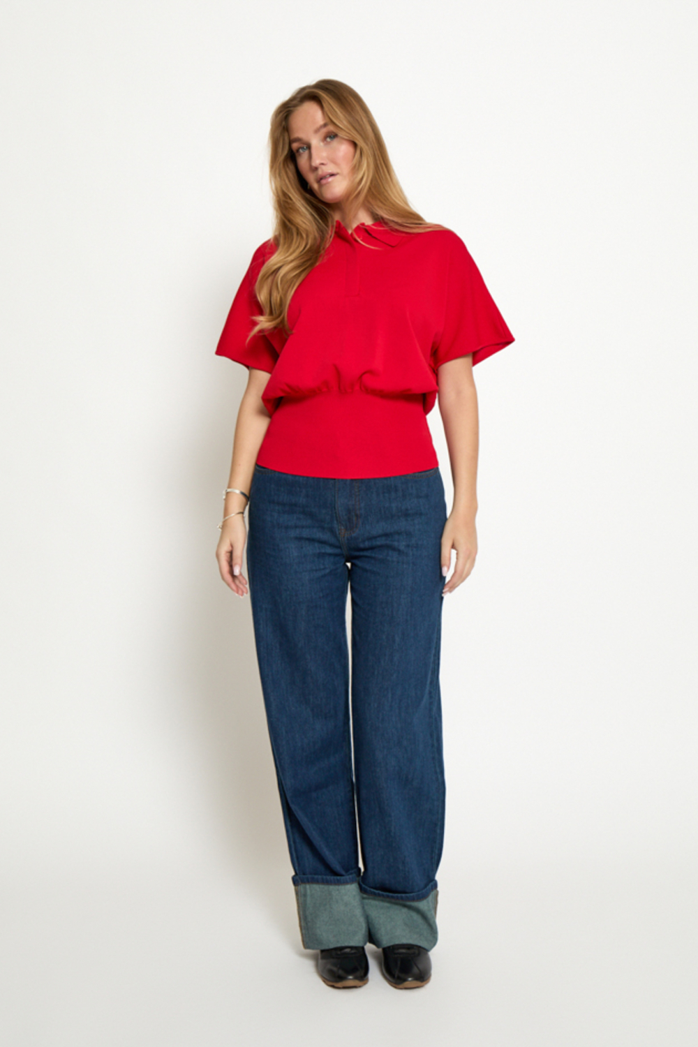 Deze stijlvolle rode trui van Peppercorn is een verfijnde toevoeging aan je garderobe. Met een regular fit biedt deze trui zowel comfort als een modieuze uitstraling voor elke gelegenheid. Gemaakt van een zachte mix van 65% viscose en 35% polyamide, voelt de stof comfortabel aan op je huid en beweegt het soepel mee. De trui heeft een puntkraag en een subtiele blinde knoopsluiting, wat een nette, klassieke look creëert zonder in te boeten op stijl. De korte mouwen geven de trui een luchtige uitstraling, perfect voor de lente. De levendige rode kleur van deze trui maakt hem veelzijdig te combineren, of je nu kiest voor een casual jeans of een elegante rok. De normale lengte zorgt voor een evenwichtige pasvorm die zowel formeel als informeel gedragen kan worden. Dit kledingstuk is ideaal voor een dag op kantoor, een avondje uit of een weekendbrunch. De trui past bij verschillende kledingstijlen, waardoor je hem naar eigen smaak kunt stylen en altijd een goede match hebt met jouw persoonlijke uitstraling.