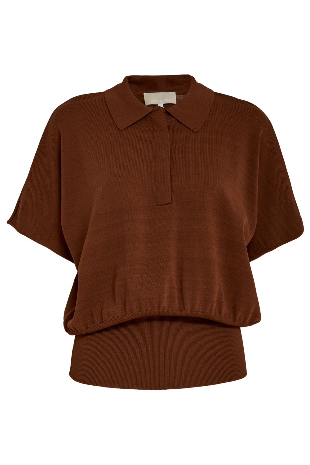 De Peppercorn trui voor dames combineert comfort en stijl met een moderne uitstraling. Gemaakt van 65% viscose en 35% polyamide, biedt deze trui een zachte en ademende stof die ideaal is voor de lente. De warme, roestbruine kleur voegt een rijke touch toe aan je outfit, terwijl de blinde knoopsluiting en de puntkraag subtiele verfijning bieden. De regular fit maakt het een veelzijdig kledingstuk dat perfect past bij diverse lichaamstypes. Deze knitwear trui met korte mouwen en een normale lengte is een uitstekende keuze voor zowel informele als semi-formele gelegenheden. De elastische tailleband accentueert de vorm zonder in te boeten op comfort. Draag hem met een lichte broek voor een casual lunch of combineer hem met een nette rok voor een meer geklede look. Of je nu een dagje gaat shoppen of een middag op kantoor hebt, deze Peppercorn trui biedt je een betrouwbare en stijlvolle optie.