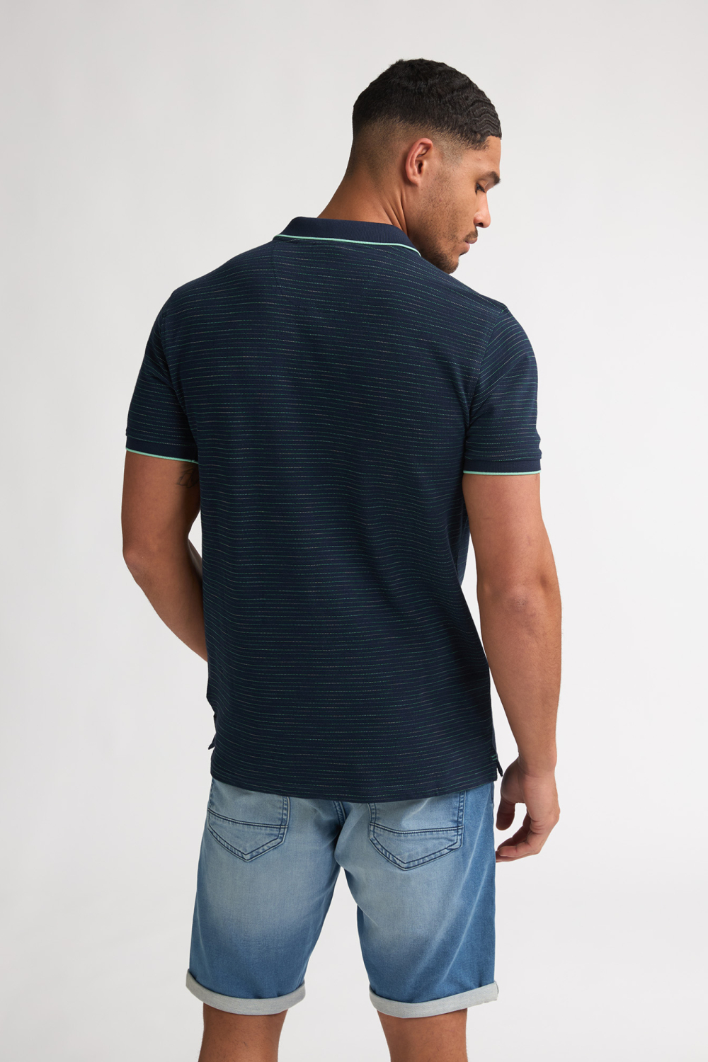 • Petrol Industries blauwe heren polo | Model achteraanzicht