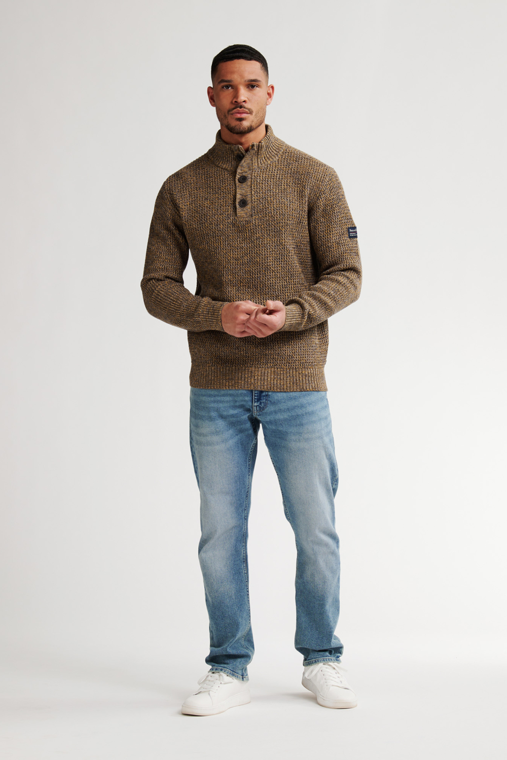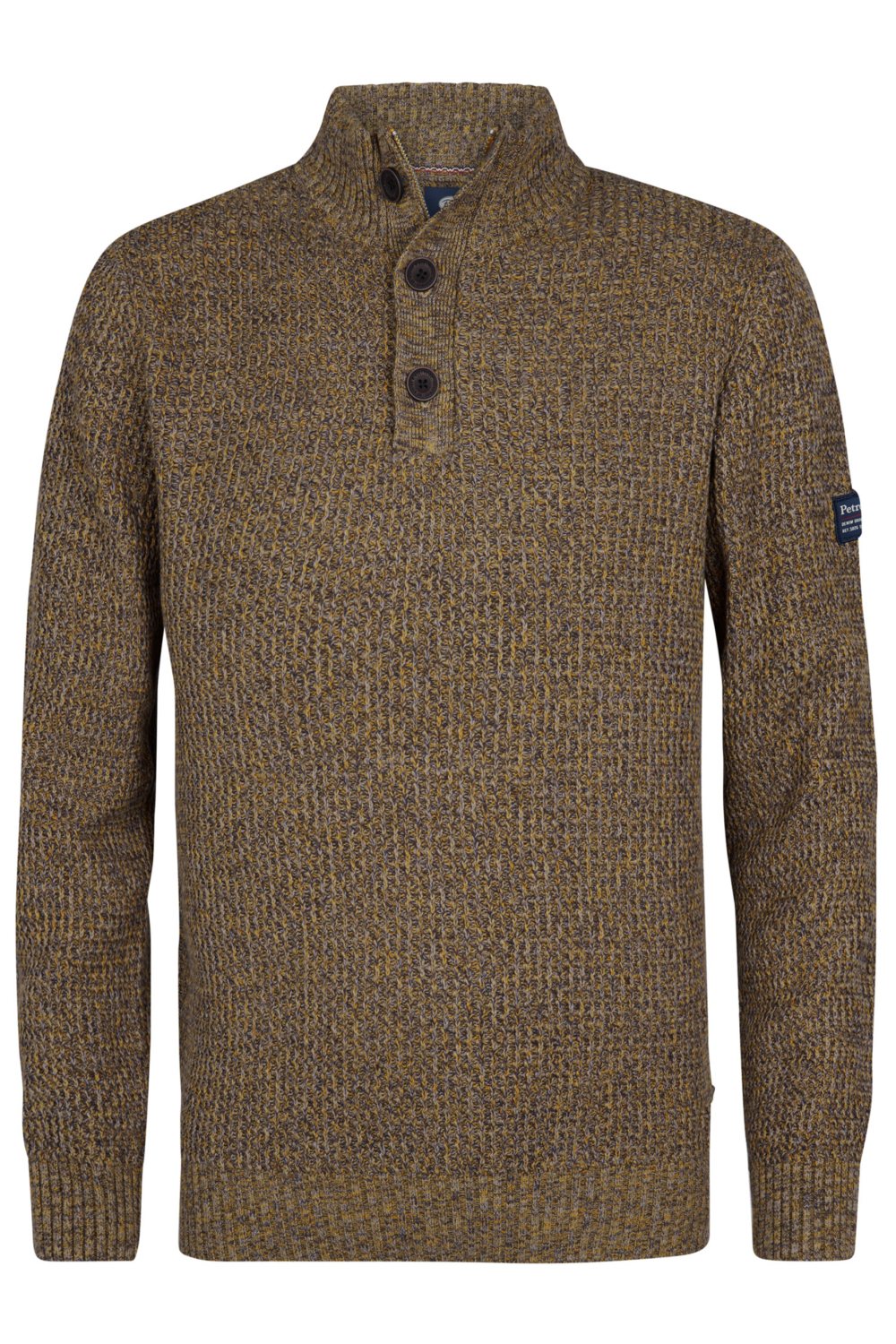 Deze gemêleerde trui van Petrol Industries biedt een warme en stijlvolle toevoeging aan je wintergarderobe. Het knitwear ontwerp in aardetinten zorgt voor een tijdloze uitstraling, terwijl de regular fit een comfortabele pasvorm garandeert. Met een hoge hals en een combinatie van knopen en rits voor sluiting, blijft de kou buiten, waardoor je deze trui perfect kunt dragen tijdens de koudere maanden. Gemaakt van 100% katoen, biedt deze trui zowel zachtheid als duurzaamheid. Of je nu een dag op kantoor hebt of een ontspannen weekendje weg plant, de veelzijdigheid van deze trui biedt voor elke gelegenheid een passende optie. Combineer het met een spijkerbroek voor een casual, yet sophisticated look, of draag het over een overhemd voor een iets formelere uitstraling. De lange mouwen en normale lengte maken het makkelijk om te combineren met vrijwel alles, terwijl het subtiele Petrol Industries label op de mouw de kwaliteit van het merk onderstreept.
