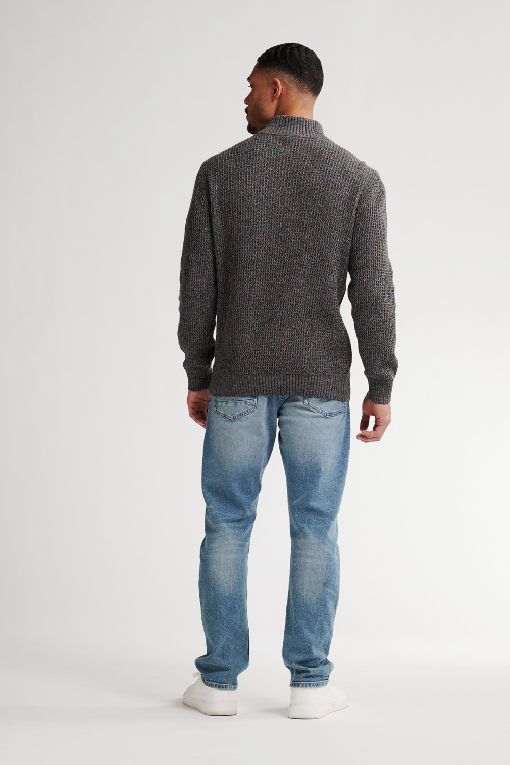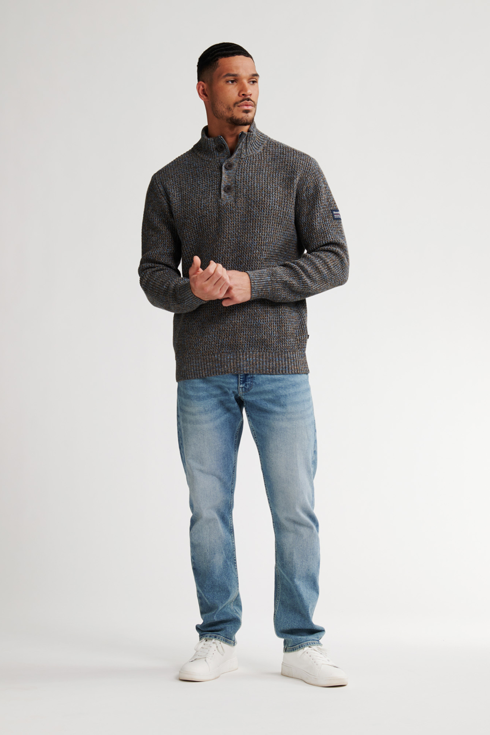 Deze gemêleerde trui van Petrol Industries in de kleur 5190 Indie Blue is een echte blikvanger binnen je wintergarderobe. Met een regular fit pasvorm en gemaakt van duurzaam 100% gerecycled katoen, biedt deze trui zowel comfort als een milieuvriendelijke keuze. De high neck met knoop- en ritssluiting geeft een stijlvolle uitstraling die je zowel tijdens een informele lunch als een avondwandeling kunt dragen. De gemêleerde blauwe en bruine tinten zorgen voor een modieuze touch, waardoor deze trui gemakkelijk te combineren is met diverse kleuren jeans. Deze Petrol Industries trui met lange mouwen heeft een robuuste knitwear stijl, perfect voor de koude seizoenen. De normale lengte maakt het een veelzijdig kledingsstuk dat je gemakkelijk over een T-shirt of overhemd kunt dragen voor extra warmte. Dankzij de knoopdetails op de kraag kun je de trui eenvoudig aanpassen aan het weer en je eigen stijl. Of je nu een rustige dag doorbrengt of een actieve buitenactiviteit plant, deze trui biedt de juiste balans tussen casual en stijlvol.
