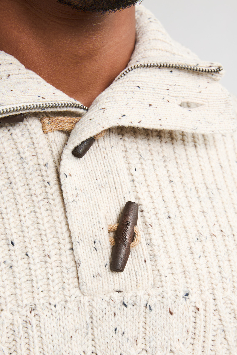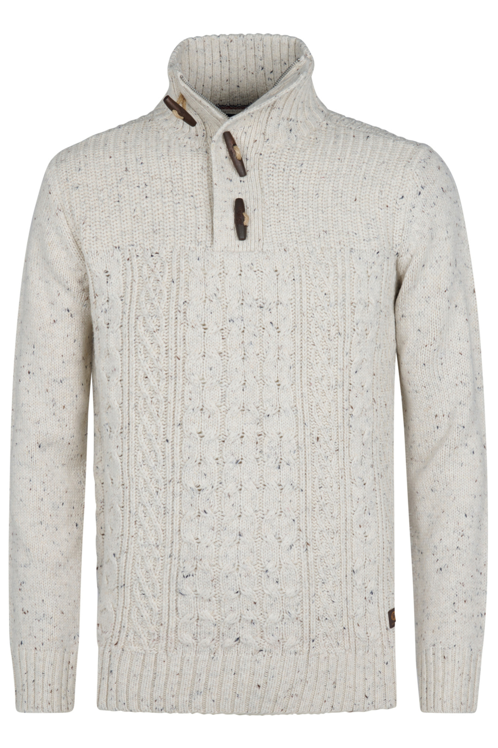 Deze heren trui van Petrol Industries, in de kleur Antique White Melee, is een stijlvolle toevoeging aan je wintergarderobe. Met een comfortabel regular fit en gemaakt van een mix van acryl, katoen en nylon, biedt de trui een warme en zachte draagervaring. Het opvallende kabelpatroon geeft de trui een klassieke uitstraling, terwijl de kenmerkende high neck met knoop- en ritssluiting zorgt voor extra warmte op koude dagen. De speckled finish voegt een subtiele, moderne textuur toe aan het geheel. Perfect voor diverse gelegenheden, deze knitwear stijl combineert goed met een casual jeans en sneakers voor een ontspannen look, maar kan ook formeler gedragen worden met een nette broek en boots. De lange mouwen en normale lengte zorgen voor voldoende bewegingsvrijheid en comfort. Of je nu een winterwandeling maakt of naar een informele bijeenkomst gaat, deze trui is een veelzijdige keuze die je stijlvol houdt zonder in te boeten op functionaliteit.