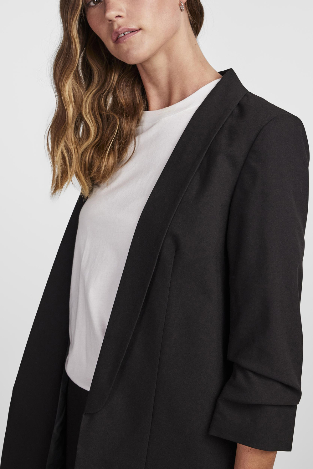 Deze stijlvolle zwarte blazer van Pieces is een veelzijdige keuze voor je dagelijkse garderobe. De blazer heeft een regular fit en is gemaakt van een comfortabele mix van polyester, viscose, en elastaan. De revers kraag en de 3/4 mouwen geven deze halflange blazer een moderne uitstraling die je zowel casual als chic kunt dragen. Perfect voor een eigentijdse look die moeiteloos elegantie uitstraalt. Dankzij het tijdloze design en de zwarte kleur is deze Pieces blazer gemakkelijk te combineren met verschillende outfits. Draag hem over een witte top met een nette broek naar kantoor, of met een casual jeans voor een avondje uit. De polyester voering zorgt ervoor dat de blazer netjes valt en comfortabel aanvoelt. Of je nu een zakelijke afspraak hebt of een relaxte lunch met vrienden, deze blazer is een betrouwbare keuze voor elke gelegenheid.