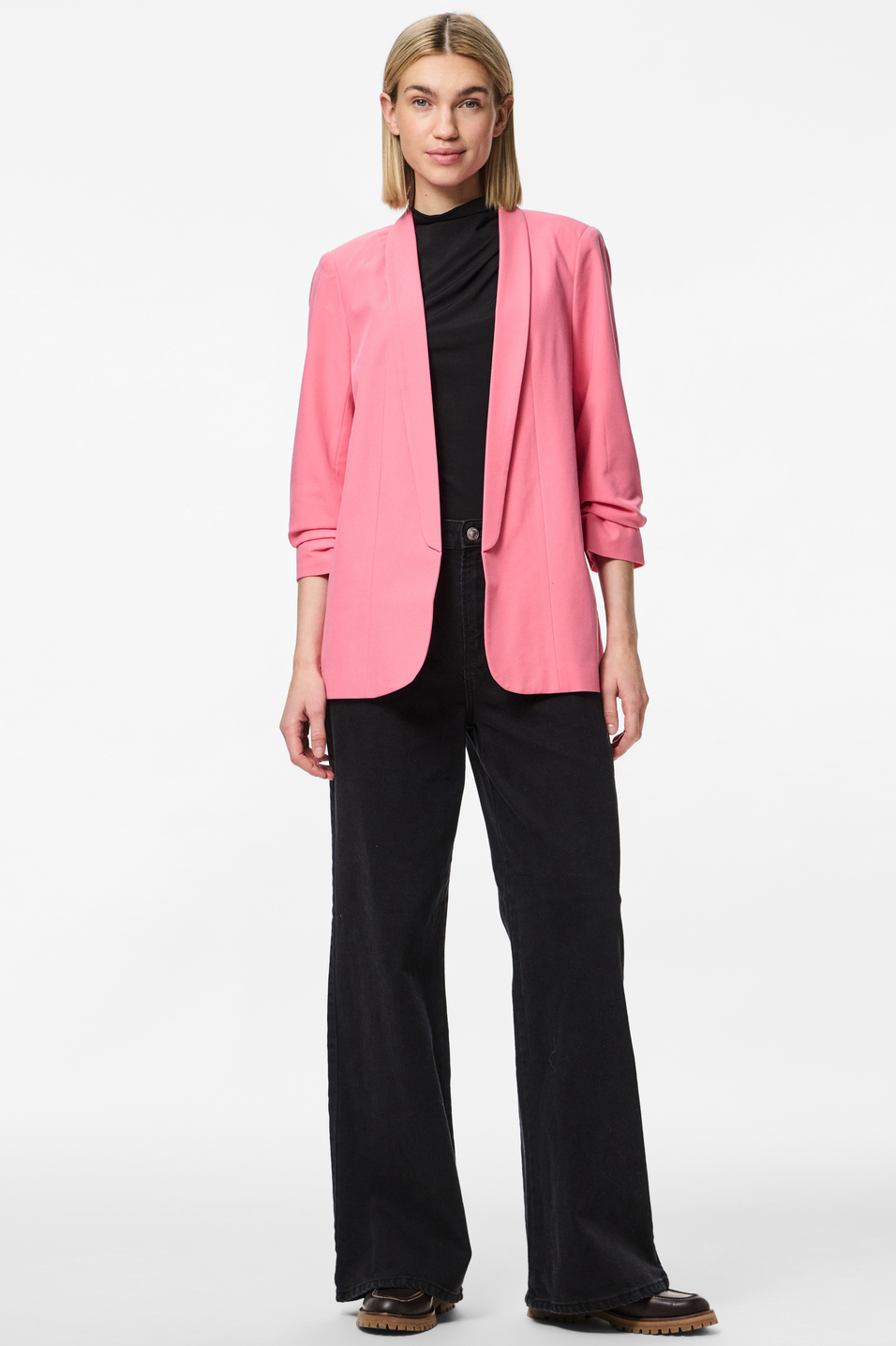Deze casual Pink Lemonade blazer van Pieces is een veelzijdige keuze voor jouw garderobe. Met zijn halflange ontwerp en 3/4 mouwen biedt deze blazer een unieke combinatie van comfort en stijl. De frisse roze kleur geeft een speelse tint aan je outfit, terwijl de reverskraag zorgt voor een klassieke touch. De blazer heeft een regular fit en geen zakken, wat een gestroomlijnde look creëert zonder afleidingen. Gemaakt van duurzaam polyester, voelt de stof zacht aan op de huid en voegt hij een extra dimensie van comfort toe. De Pieces blazer leent zich uitstekend voor verschillende gelegenheden. Of je nu een dag op kantoor hebt of een casual avondje uit plant, deze blazer past bij veel outfits. Combineer hem met een zwarte jeans en een eenvoudig T-shirt voor een nonchalante chique uitstraling, of draag hem over een jurk voor een meer formele setting. Dankzij de voering behoudt de blazer zijn vorm en biedt hij je de bewegingsvrijheid die je nodig hebt. Voeg deze veelzijdige blazer toe aan je collectie voor een tijdloze en stijlvolle look.