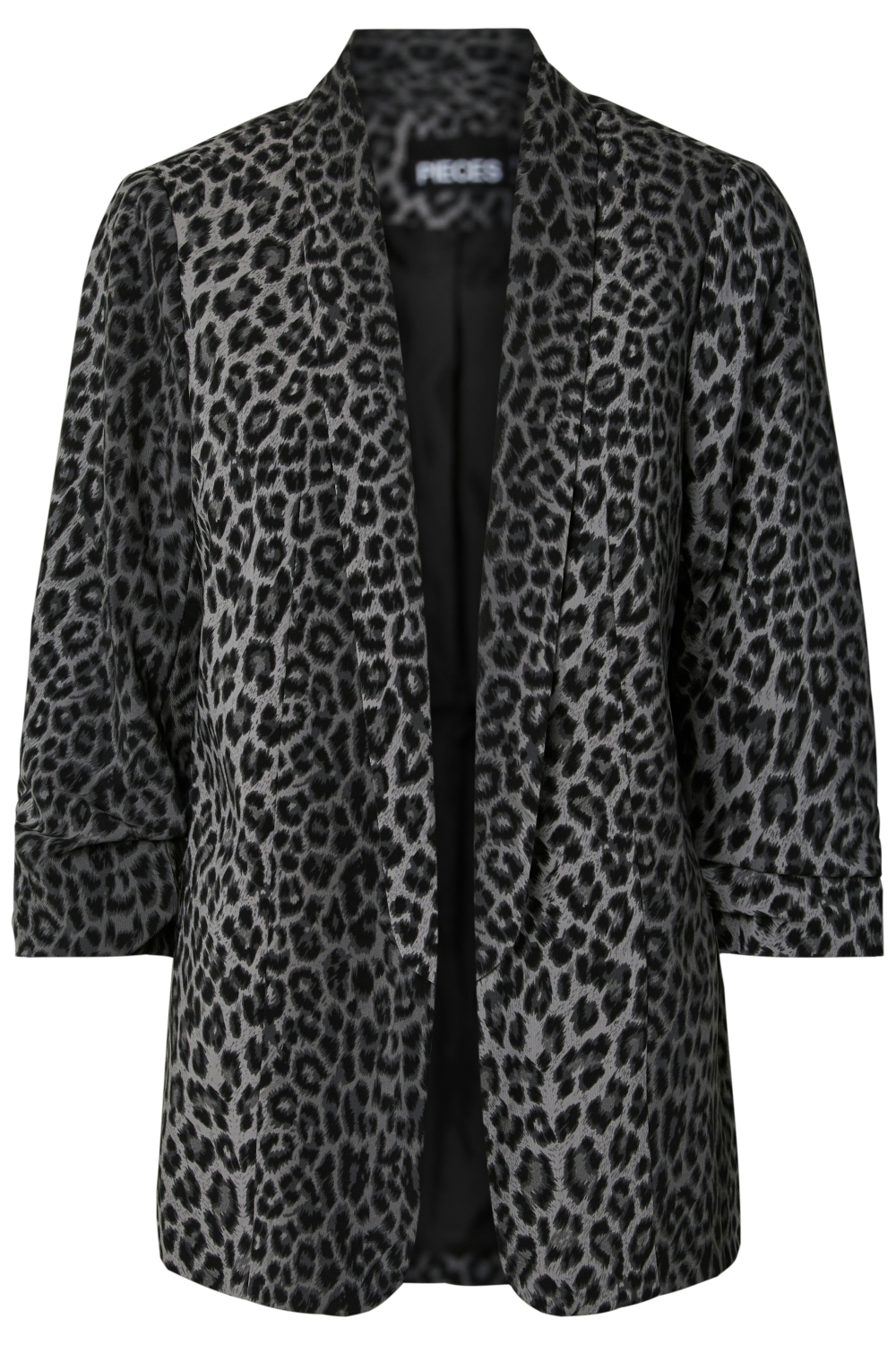 Deze casual blazer van Pieces is een stijlvolle keuze voor elke garderobe. Met zijn opvallende grijze luipaardprint straalt hij meteen een moderne en modieuze uitstraling uit. De blazer heeft een regular fit en is gemaakt van 98% polyester en 2% elastaan, waardoor hij comfortabel zit en een subtiele stretch biedt. De reverskraag en de halflange lengte geven de blazer een elegante touch, terwijl de 3/4 mouwen zorgen voor een speelse en trendy look.