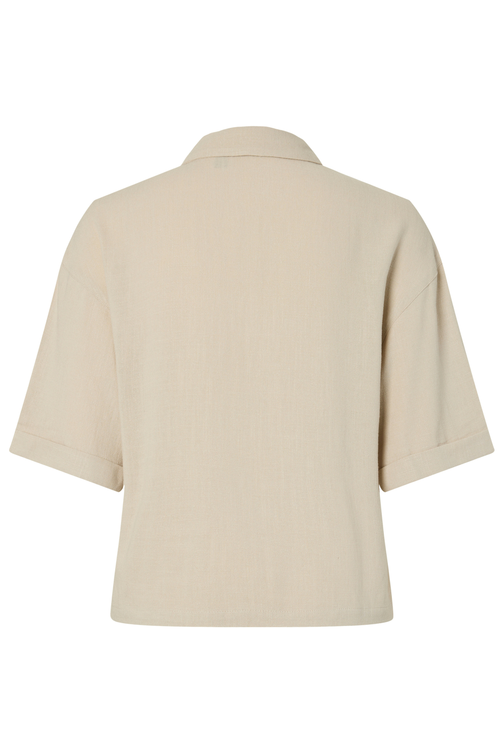Deze casual damesblouse van Pieces in de kleur "Silver Lining" is een veelzijdige toevoeging aan je lente-garderobe. Gemaakt van een comfortabele mix van 80% viscose en 20% linnen, geeft dit kledingstuk je een luchtig en aangenaam gevoel. De blouse heeft een regular fit en een klassieke puntkraag, complementerend met een nette knoopsluiting. De korte mouwen maken het ideaal voor warmere dagen, terwijl de subtiele, neutrale tint veelzijdig genoeg is om met diverse outfits te combineren. Hoewel de blouse een normale lengte heeft, zorgt het casual design ervoor dat het zowel geschikt is voor een ontspannen dag thuis als voor een casual kantooroutfit. Draag het op een jeans voor een informele look of combineer het met een nette broek voor een iets formelere stijl. De eenvoudige zak aan de voorkant voegt een subtiel detail toe zonder de minimalistische esthetiek te verstoren. Dit product is een stijlvolle keuze voor wie houdt van eenvoud en comfort in hun dagelijkse kleding.