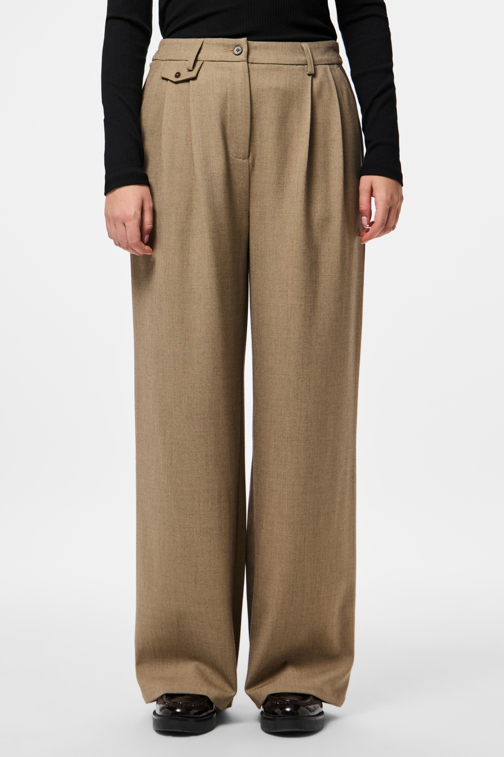 Deze gemêleerde greige broek van Pieces is een elegante keuze voor de modebewuste vrouw. Met een casual stijl en een opvallende wide-leg pasvorm biedt deze broek een comfortabele en moderne uitstraling. De high waist taille accentueert je figuur op een subtiele manier, terwijl de steekzakken praktisch en stijlvol zijn. Gemaakt voor de lente, brengt deze broek frisheid in je garderobe zonder aan elegantie in te boeten. De knoop- en ritssluiting voegen een klassiek detail toe aan het geheel. De veelzijdigheid van deze broek maakt het gemakkelijk om te combineren voor verschillende gelegenheden. Of je nu een dag op kantoor hebt of een casual uitstap plant, deze Pieces broek past perfect bij verschillende looks. Het gemêleerde patroon voegt een subtiele textuur toe, waardoor het eenvoudig te dragen is met zowel effen als drukker bedrukte bovenstukken. Of je nu voor een chique of relaxte outfit gaat, deze broek is de ideale aanvulling op je kledingkast.