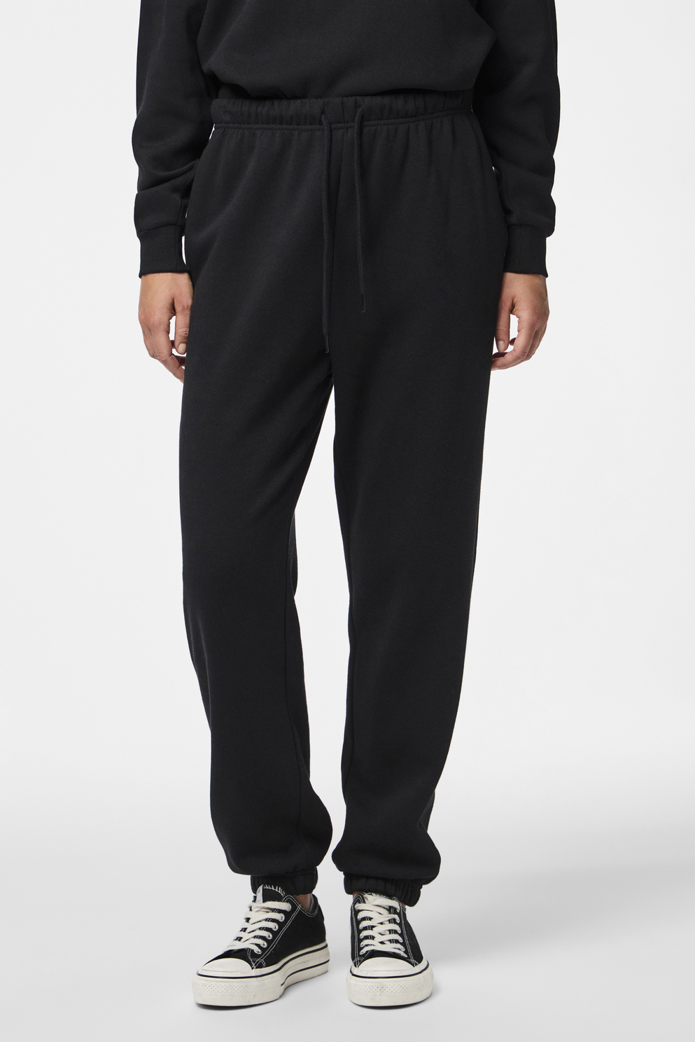 Deze comfortabele zwarte broek van Pieces is een essentiële toevoeging aan je garderobe. Met een relaxed fit en een high waist ontwerp past deze broek perfect bij elke casual outfit. De elastische boord zorgt voor een eenvoudige en comfortabele pasvorm, terwijl de praktische steekzakken je de ruimte bieden om je essentials mee te nemen. Gemaakt van 60% BCI katoen en 40% polyester, biedt de sweatstof een zachte en aangename draagervaring. De normale lengte maakt het een veelzijdig stuk dat makkelijk te combineren is met je favoriete sneakers.