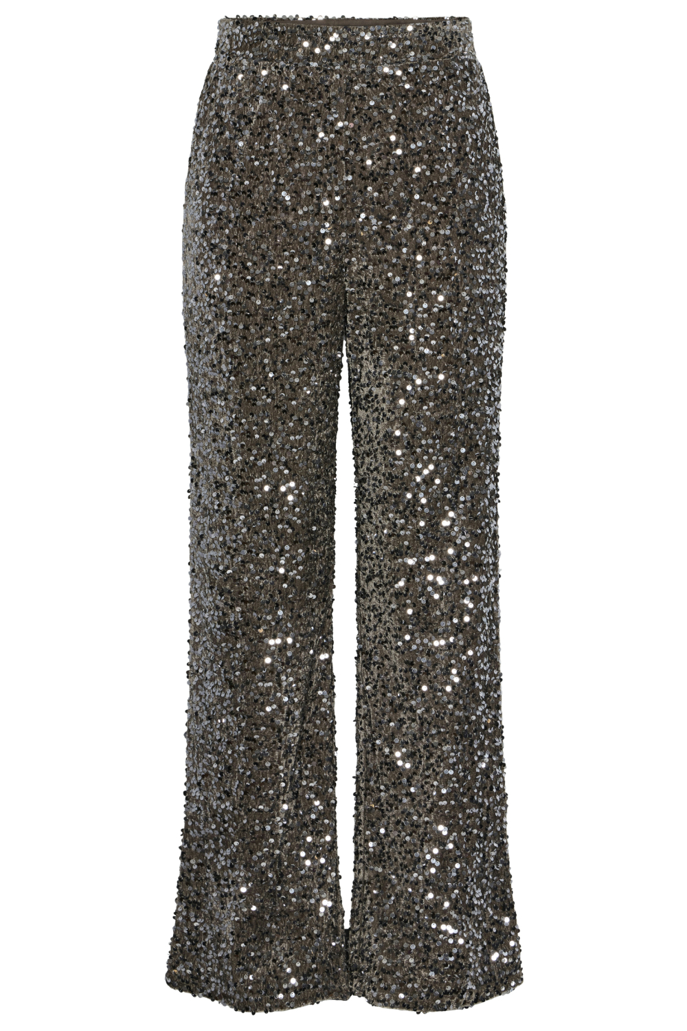Deze glinsterende damesbroek van Pieces is een absolute blikvanger in je garderobe. De wide leg pasvorm en de high waist taille geven een moderne twist aan je outfit, terwijl de elastische boord zorgt voor optimaal comfort. De broek is bezaaid met pailletten, wat het perfect maakt voor feestelijke gelegenheden in de wintermaanden. Het gebruik van 55% gerecycled polyester en 45% polyester maakt deze broek niet alleen stijlvol, maar ook een bewuste keuze. Met zijn opvallende uiterlijk en soepele pasvorm, is deze Pieces broek ideaal voor een party of een avondje uit. De normale lengte en de wijde pijpen zorgen ervoor dat je vrij kunt bewegen zonder in te boeten op stijl. Combineer het met een effen top en je bent klaar om te stralen. Dit feestelijke kledingstuk is een duurzame toevoeging aan je wintercollectie die een glamoureuze uitstraling aan elke outfit geeft.