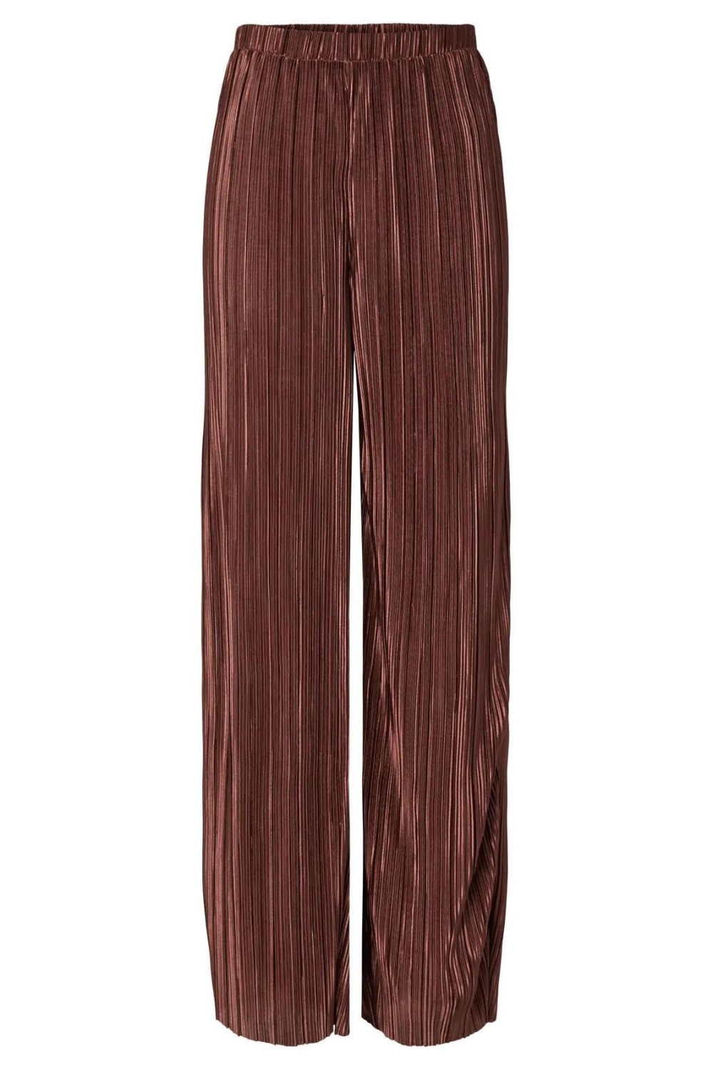 Deze stijlvolle Pieces broek, uitgevoerd in de kleur Hot Fudge, is een onderscheidende toevoeging aan je wintergarderobe. Gemaakt van 100% polyester, biedt deze broek niet alleen comfort, maar ook een moderne uitstraling door de plissé structuur. De high waist pasvorm en de wijde pijpen zorgen voor een eigentijdse look die perfect past bij een casual stijl. Dankzij de elastische boord is de broek gemakkelijk aan te passen en zit hij bijzonder comfortabel. De broek is ideaal voor uiteenlopende gelegenheden, van een ontspannen dagje thuis tot een informele bijeenkomst met vrienden. Combineer hem met een simpele top en sneakers voor een moeiteloos stijlvolle look, of voeg hakken toe voor een verfijnde touch. De normale lengte en het kenmerkende patroon maken deze broek een veelzijdige keuze die eenvoudig te stylen is met verschillende items uit je garderobe.