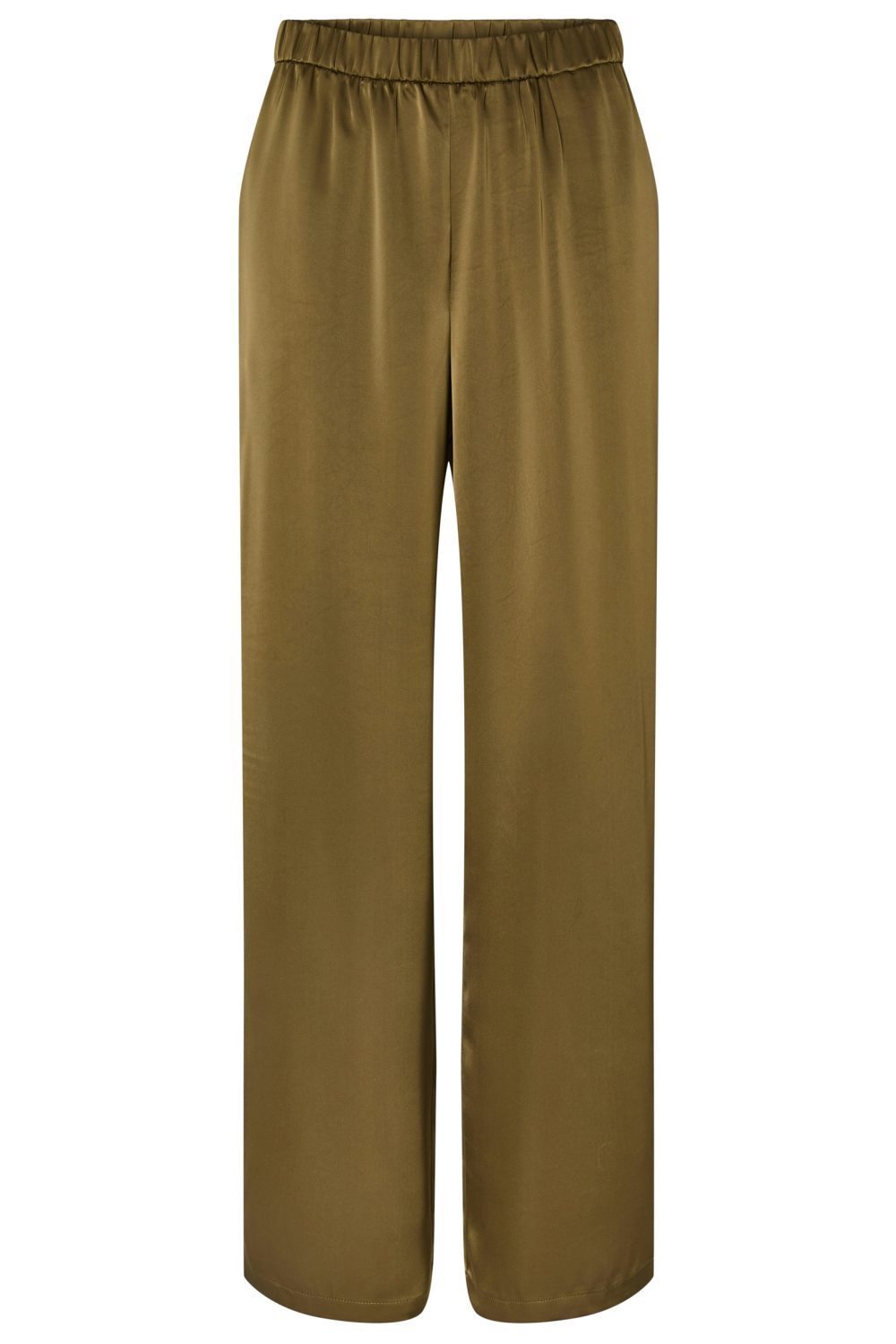Met zijn regular waist en steekzakken combineer je gemak met stijl. De glans in de stof geeft de broek een luxe uitstraling, perfect voor een avondje uit of een informele bijeenkomst. Combineer met een lichtgekleurde top voor een frisse look, of draag het met je favoriete trui voor een comfortabele dag op kantoor. Of je nu onderweg bent naar een brunch met vrienden of een dagje op pad gaat, met deze broek maak je altijd een goede indruk.
