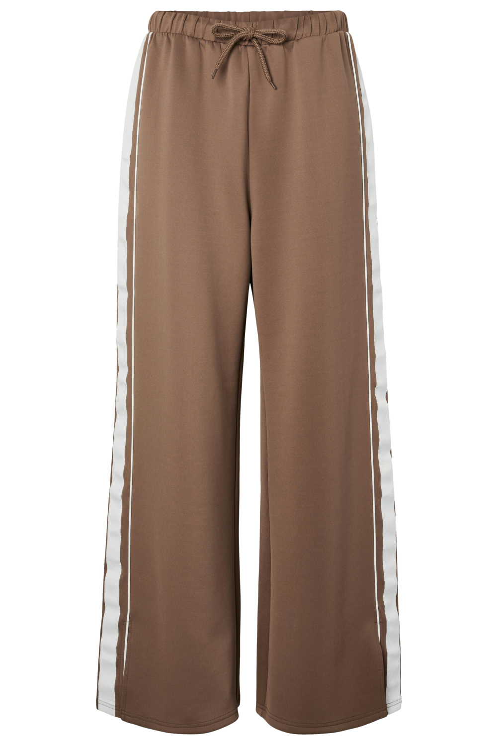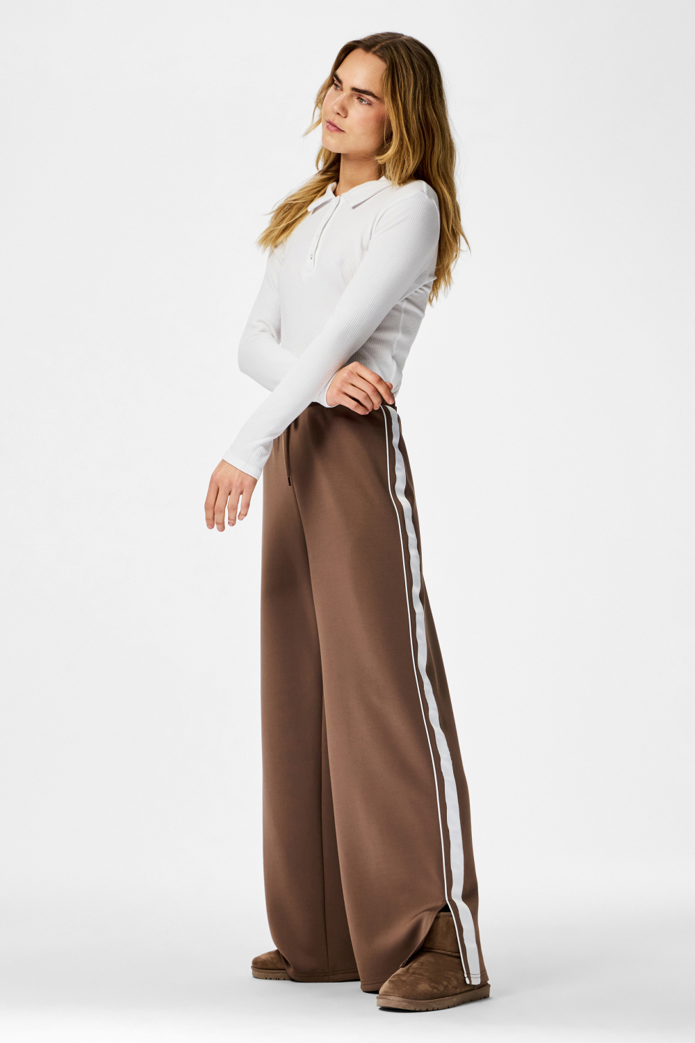 Deze casual broek van Pieces in de kleur Coffee Quartz is een perfecte aanvulling voor je dagelijkse garderobe. De broek heeft een regular pasvorm met een comfortabele high waist, ideaal voor een moeiteloze stijl. Het strikkoord zorgt voor een mooie afwerking en maakt de pasvorm flexibel. De opvallende witte strepen aan de zijkanten geven de broek een sportieve twist zonder aan elegantie in te boeten. Het neutrale en tijdloze ontwerp laat zich eenvoudig combineren met verschillende tops en schoenen, waardoor je iedere keer een frisse look kunt creëren.