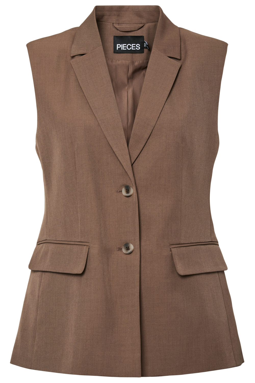 Dit elegante gilet van Pieces in de kleur Coffee Quartz is een stijlvolle toevoeging aan je lente-garderobe. Gemaakt van een mix van 97% polyester en 3% elastaan, biedt het een comfortabele pasvorm die je gemakkelijk de hele dag kunt dragen. De regular fit valt mooi en zorgt voor een tijdloze uitstraling. De V-hals en de knoopsluiting geven het gilet een klassieke look, terwijl de mouwloze afwerking een moderne twist biedt. Dit gilet is ideaal voor casual ontmoetingen maar kan ook prima bij een professionelere outfit gecombineerd worden. Het gilet is voorzien van functionele zakken die zowel praktisch als stijlvol zijn. Met zijn normale lengte sluit het goed aan bij verschillende soorten broeken, van jeans tot een nette pantalon. Of je nu een dag op kantoor doorbrengt of een ontspannen weekend uitstapje gepland hebt, dit gilet voegt een verfijnde laag toe aan je outfit. De subtiele koffiebruine tint maakt het gemakkelijk te combineren met diverse kleuren, waardoor het een veelzijdig stuk is dat je vaak wilt dragen.