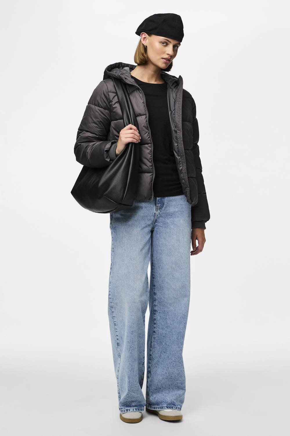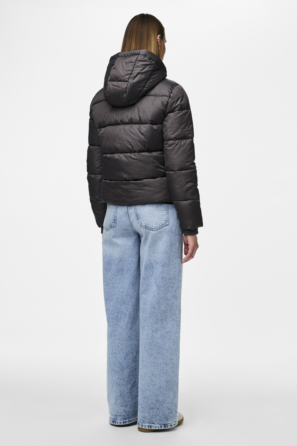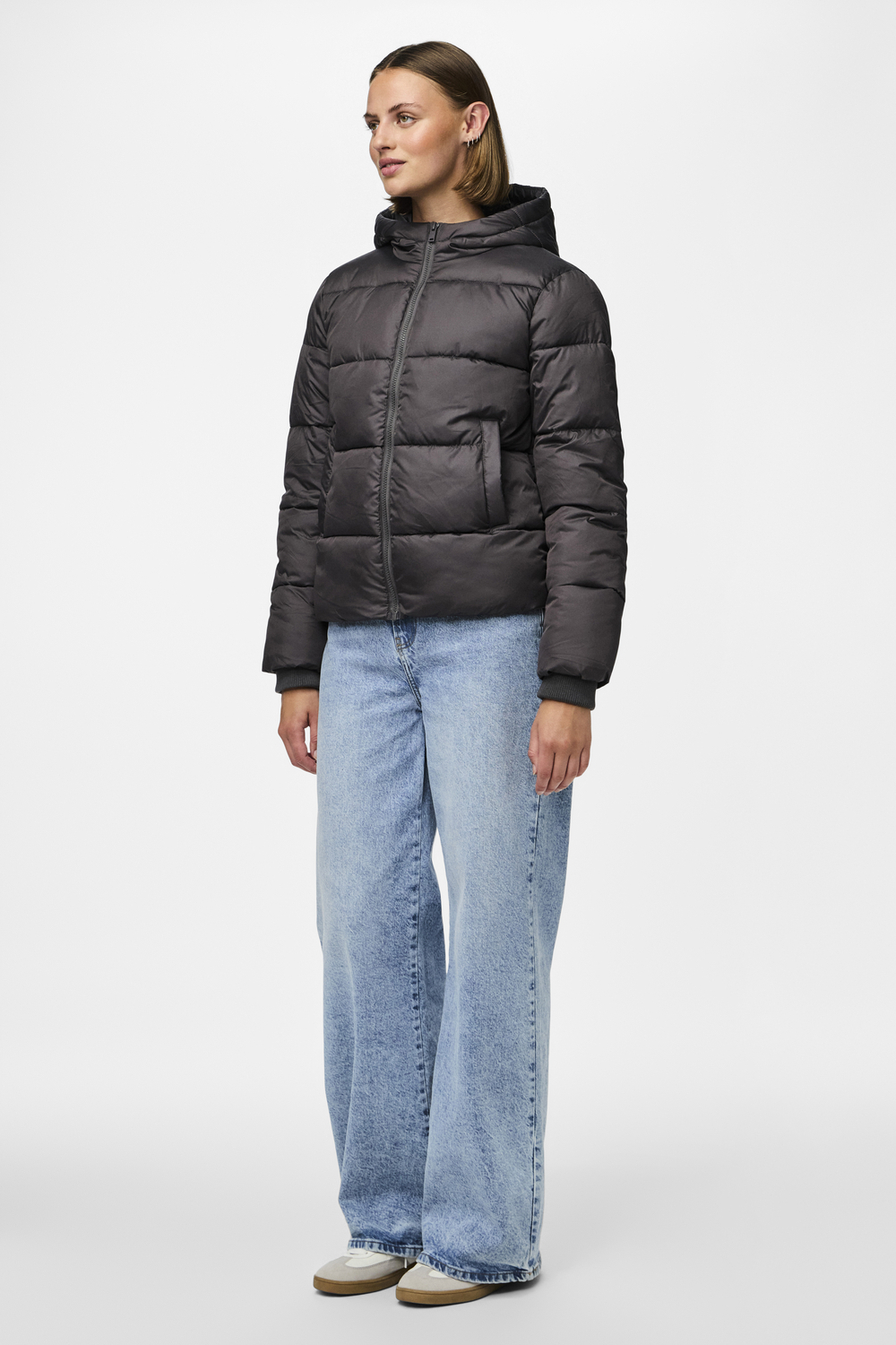Gewatteerde winterjas van Pieces met lange mouwen en een vaste capuchon. Dit model heeft steekzakken aan de voorkant en sluit met een rits.