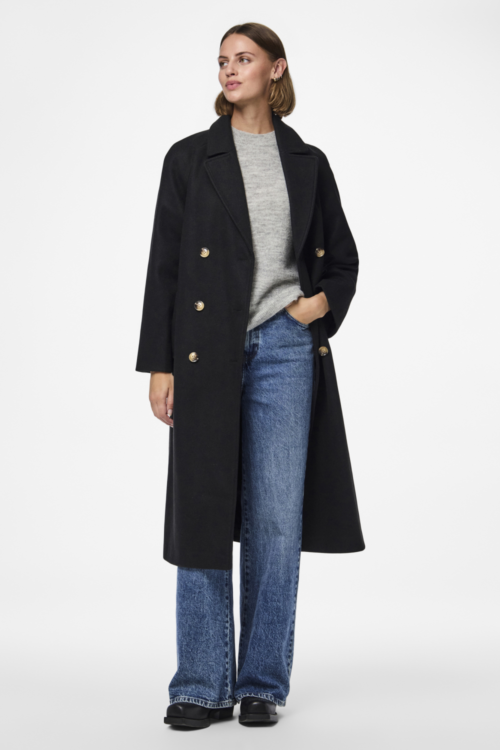 Bekijk ook de subtiele, maar opvallende steekzakken die niet alleen praktisch zijn, maar ook bijdragen aan het stijlvolle ontwerp. Het zwarte kleurenschema zorgt ervoor dat deze jas moeiteloos te combineren is met diverse outfits. Draag het over een jeans en trui voor een casual look, of combineer het met een rok en blouse voor een meer formele uitstraling. De Pieces jas biedt de ultieme mix van stijl en functionaliteit voor de moderne vrouw die graag veelzijdigheid in haar garderobe heeft.