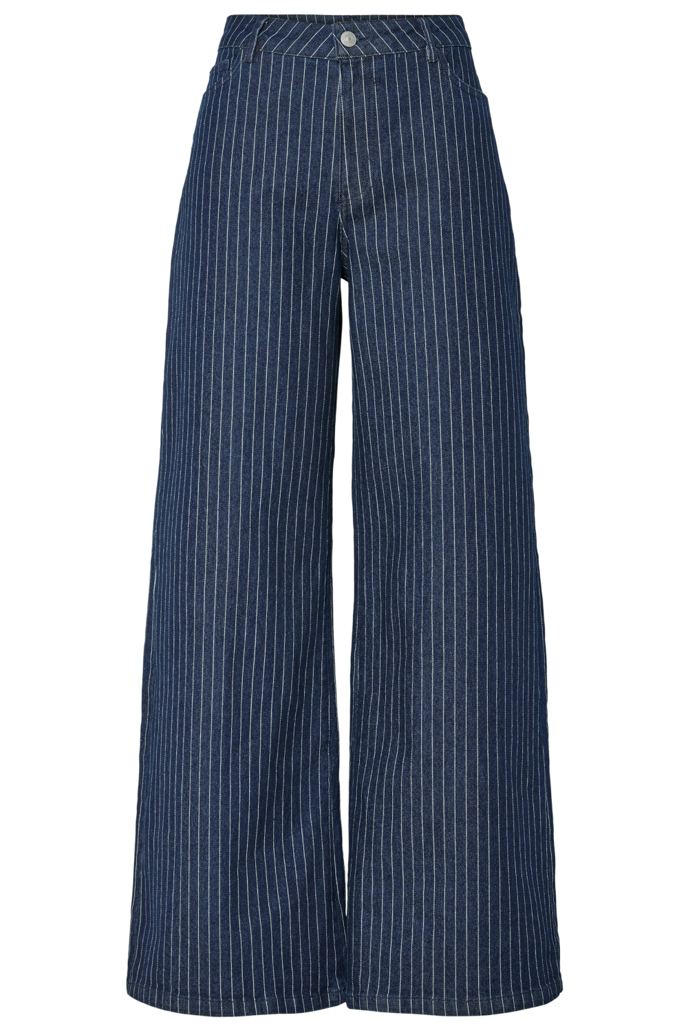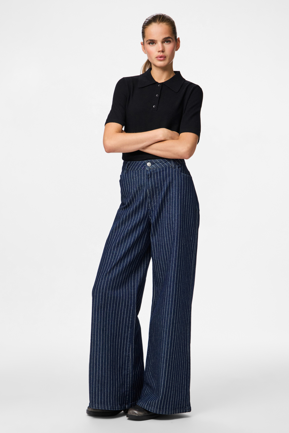 De navy streep jeans van Pieces, met een stijlvolle wide leg fit, biedt een perfecte combinatie van comfort en moderne flair. Deze denim jeans straalt tijdloze elegantie uit dankzij de subtiele verticale strepen die een verlengend effect hebben. Het 5-pocket ontwerp geeft je voldoende opbergruimte, terwijl de knoop- en ritssluiting zorgt voor een praktische en gemakkelijke pasvorm. Ideaal voor de winter, houdt het denim materiaal van 61% katoen je warm, terwijl het polyester en elastan zorgen voor voldoende stretch en draagcomfort. Met zijn regular waist en normale lengte is deze Pieces jeans een veelzijdige keuze voor elke gelegenheid. Combineer hem met een nette blouse en hakken voor een zakelijke look, of ga voor casual chic met een simpel T-shirt en sneakers. Of je nu een dag op kantoor hebt of een gezellige avond uit plant, deze jeans biedt een stijlvolle basis voor elke outfit. Laat de navy strepen subtiel terugkomen in je accessoires voor een complete look.