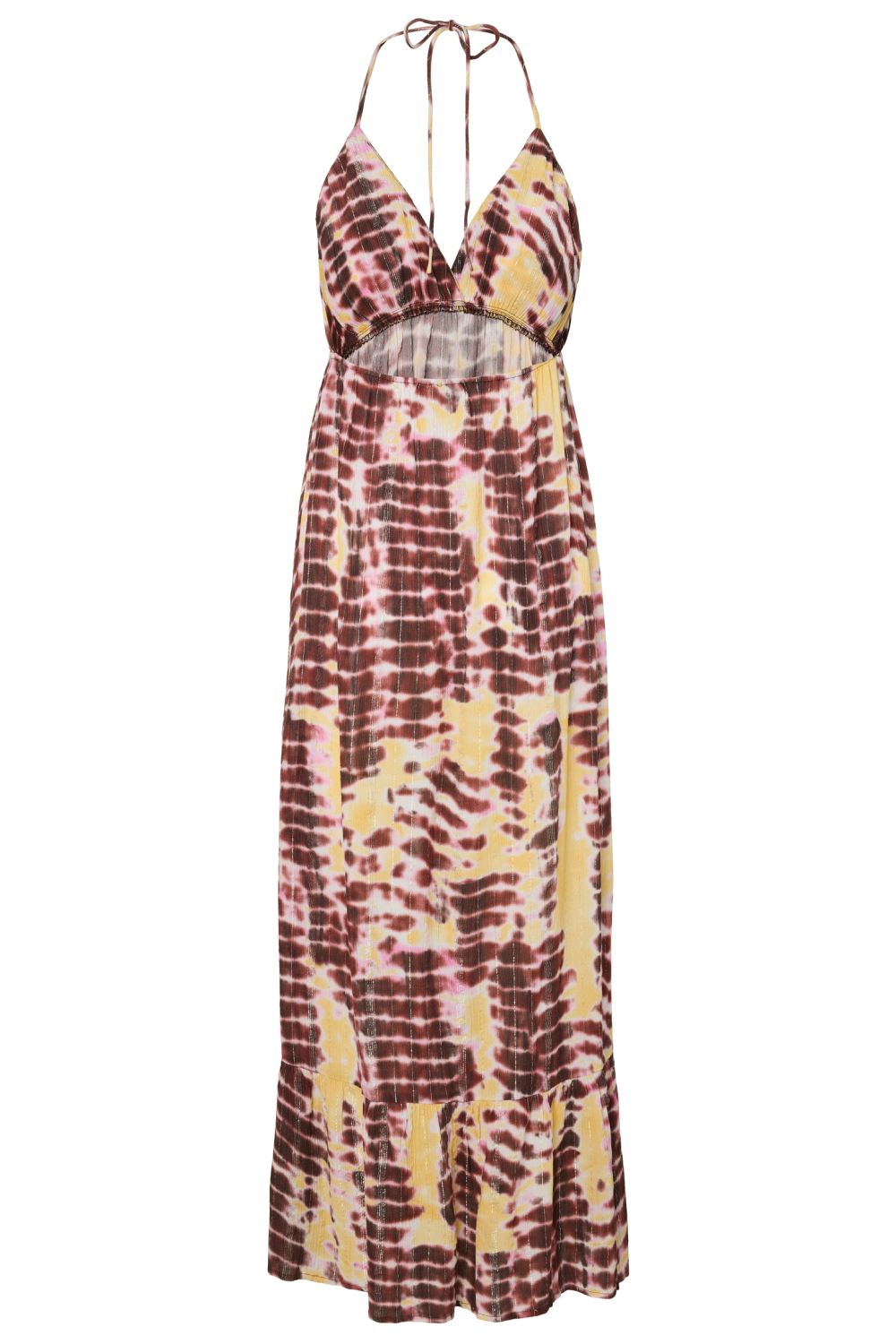 De lange zomerjurk van Pieces is een verfijnd exemplaar dat jouw garderobe compleet maakt. Deze jurk is vervaardigd van 99% viscose en afgewerkt met 1% metaalgaren, wat zorgt voor subtiele glitters die een klein vleugje glamour toevoegen aan je look. De jurk heeft een speelse V-hals en is mouwloos, waardoor je stijlvol en luchtig de warme dagen doorkomt. Dankzij het strikkoord kun je de pasvorm eenvoudig aanpassen voor comfortabel draaggemak. Het patroon, rijk aan warme tinten, maakt het een opvallende keuze voor diverse gelegenheden. Of je nu een dagje naar het strand gaat of een zomerfeest hebt, deze jurk past perfect bij casual settings. Het is de ideale keuze voor een relaxte dag buiten de deur, maar eveneens geschikt voor een gezellige avond met vrienden. Door de ontspannen regular fit kun je vrij bewegen zonder in te boeten op stijl. Combineer deze jurk met je favoriete sandalen en je bent klaar voor elke zomerse gelegenheid. Meer informatie: De totale lengte is 130 cm bij maat S.