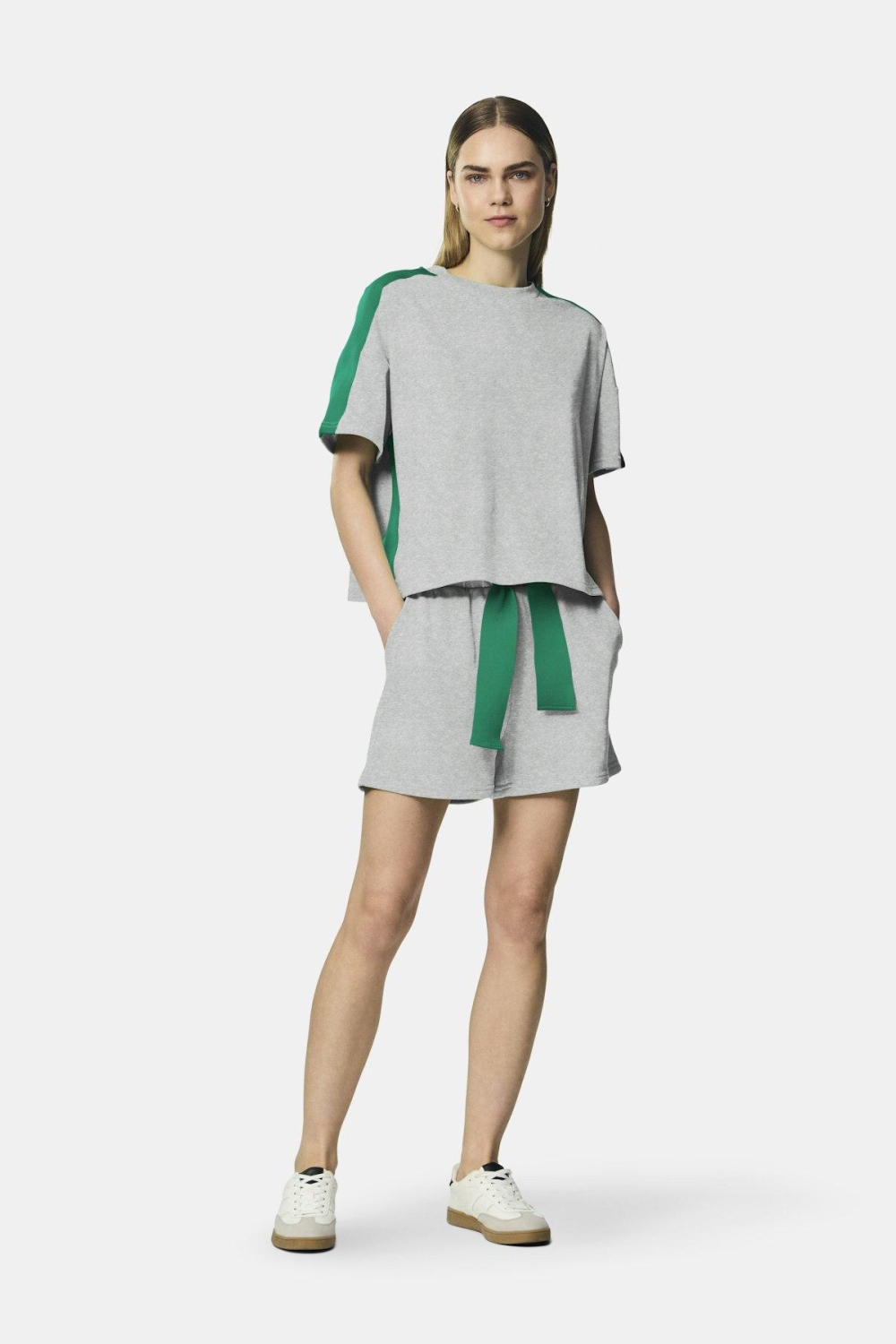 Deze casual korte broek van Pieces is een veelzijdige aanvulling voor je lente garderobe. De gemêleerde grijze kleur en de opvallende groene rijgkoord geven de broek een moderne twist. Gemaakt van een comfortabele mix van 50% katoen en 50% polyester, biedt deze regular fit short een aangenaam draaggemak dankzij de elastische boord. De lengte is normaal en de regular waist zorgt ervoor dat deze broek bij verschillende lichaamstypes mooi valt. Of je nu een ontspannen dag thuis hebt of een zonnige wandeling maakt, deze Pieces korte broek biedt het comfort en de stijl die je zoekt. De subtiele gemêleerde textuur maakt het gemakkelijk om te combineren met een effen T-shirt voor een luchtige, stijlvolle uitstraling. Of je nu in het park bent of langs de boulevard wandelt, met deze short maak je altijd een verzorgde indruk.